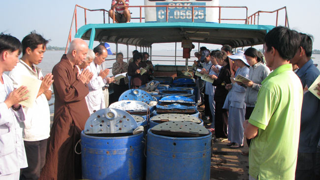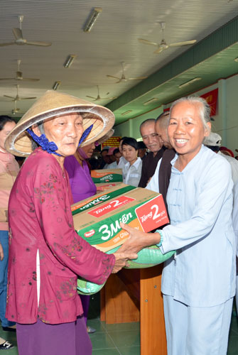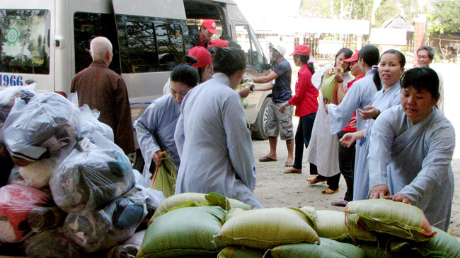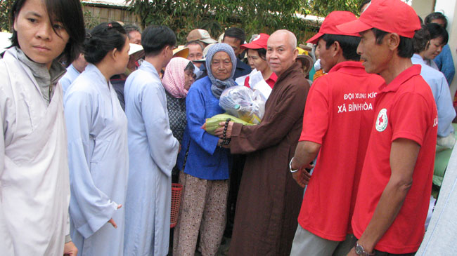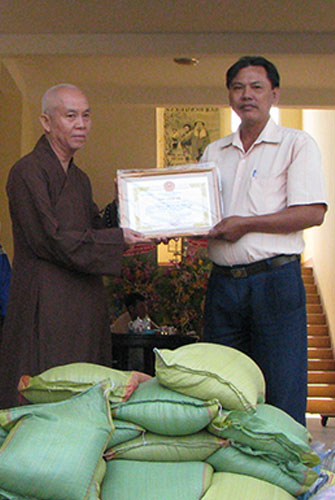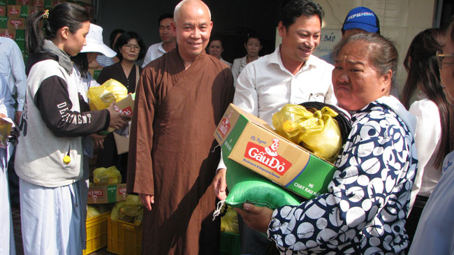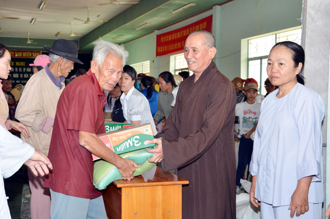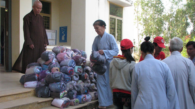 Continue program "Spring Love", according to the teachings of Venerable Abbot Thich Legs, in those days this Tet, Buddhist monks and temples Kobo has to Binh Thuan, Long An and Can Tho given small gifts for the poor and near-poor households.