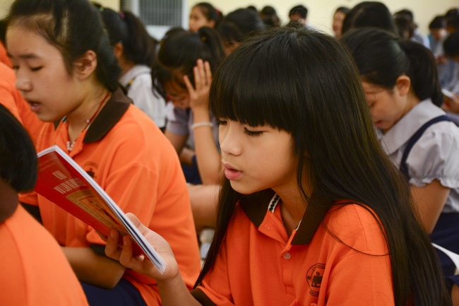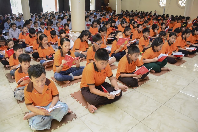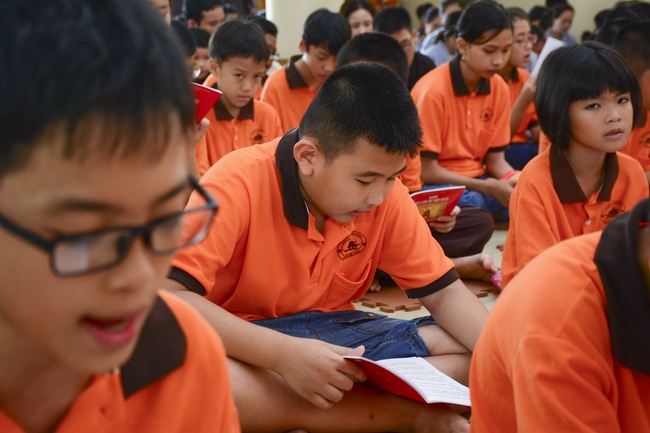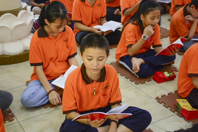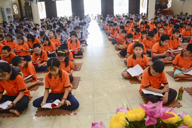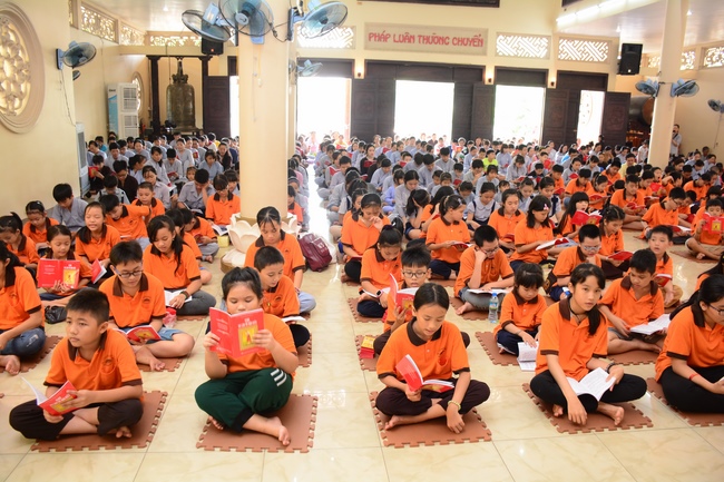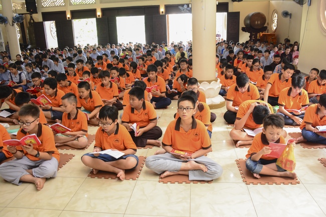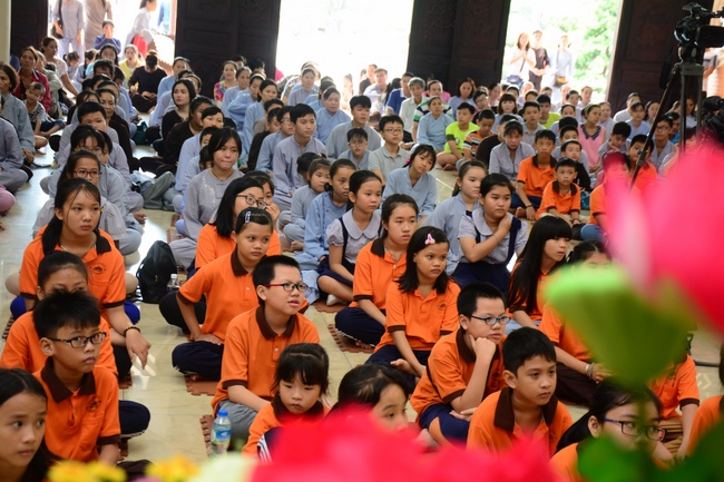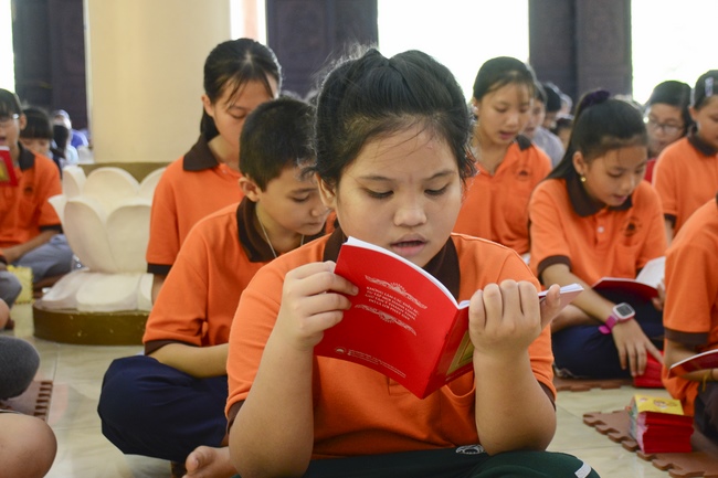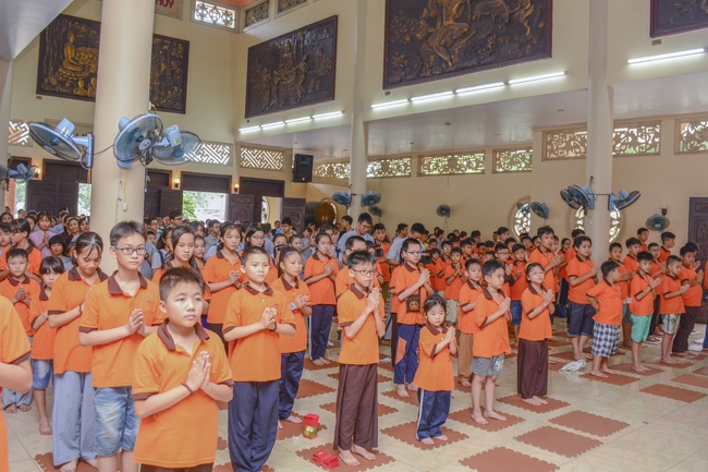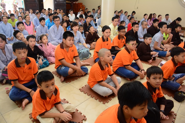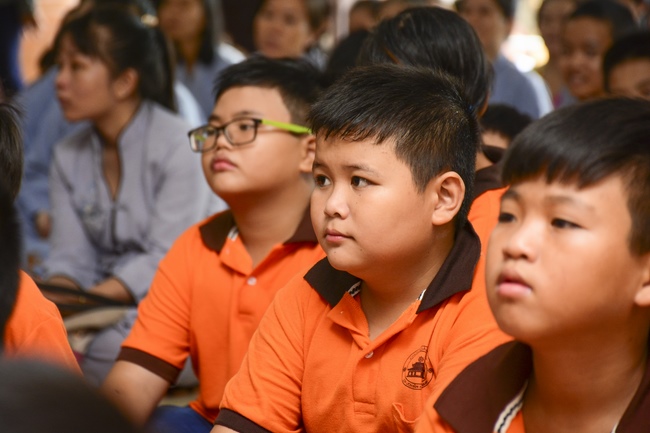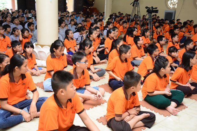 At the end of the talk, participants recite the Ullambana Sutra and Parent Merit Sutra that help them understand more about parent’s merit and love. From that point of view, each child pledges to him/herself to be a good kid in the family, obey parent’s guideline, try the best doing things to express the gratitude to parent’s merit.