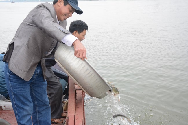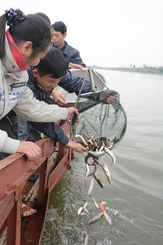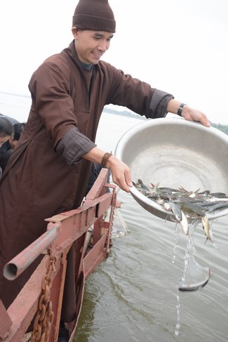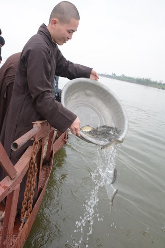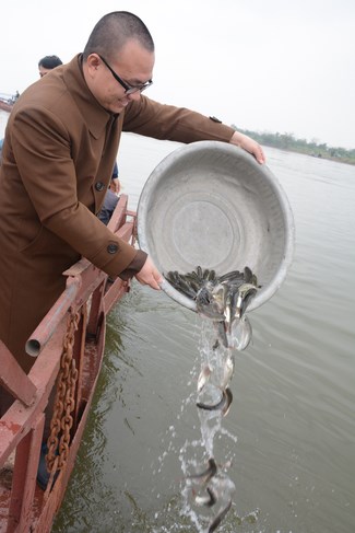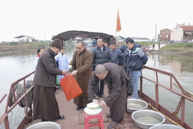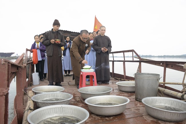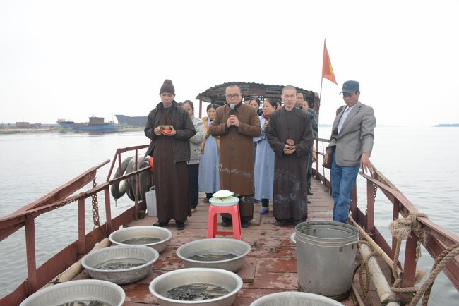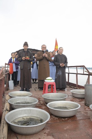 On February 17th 2016 (Lunar January 10th, Monkey Year), Junior Ven. Thich Tam Kinh, Abbot of Tay Khanh Pagoda, Cao Mai Hamlet, Quang Hung ward, Kien Xuong District, Thai Binh Province and Buddhists came to the Red River to release creatures by The New Year.