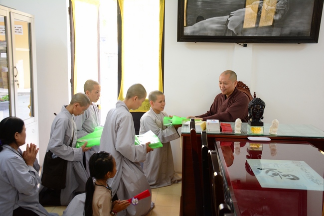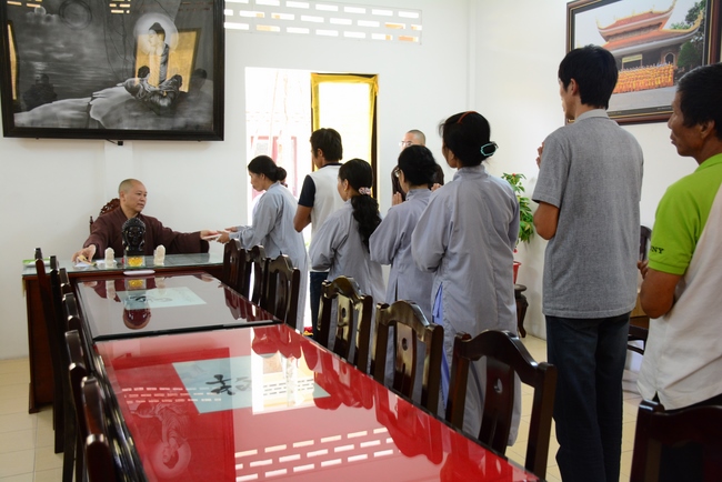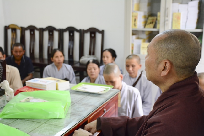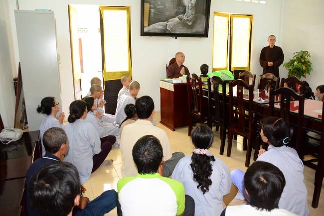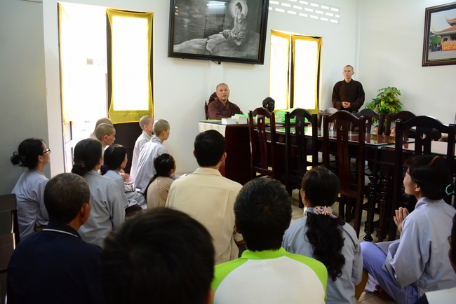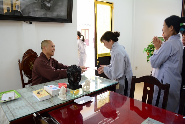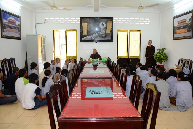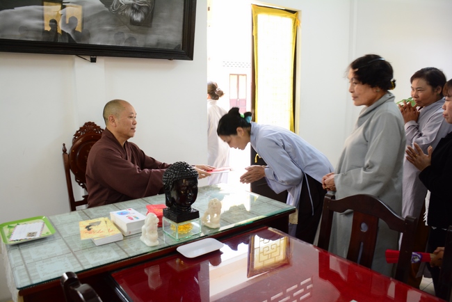 During the meeting, the Abbot reminded everyone behaving properly as Buddhist, following Buddha’s example and diligently cultivating to purify the three great powers, body, speech and mind. Bodhisattva Siddhārtha has practiced for immeasurable kalpas. As a result, in his last reincarnation, he could absolutely purify his three vajras (three great powers) and attain Buddhahood after 6 years of cultivation. Today we practice, chant sutras, recite Buddha name, and meditate in even decades without getting the Attainment yet because our three great powers are still defiled. Practitioner should reflect on him/herself and try to practice more to decrease the three poisons, greed - hatred – delusion, to control and purify body, speech and mind to have peace in present and achieve liberation in future.