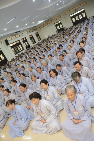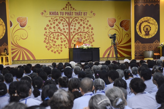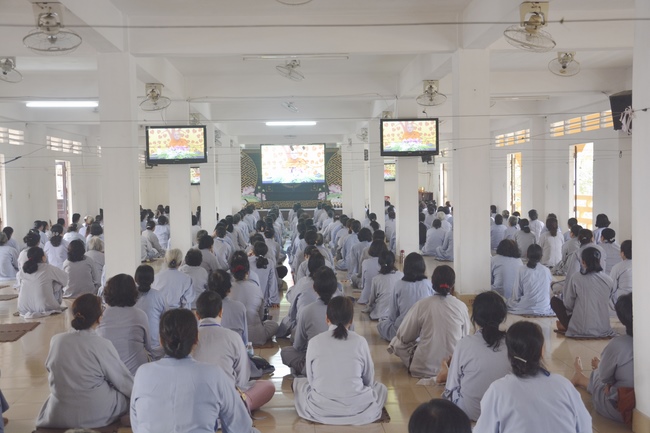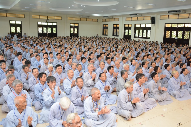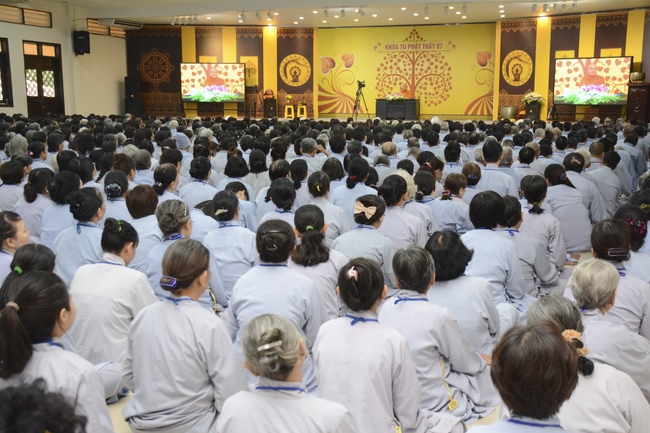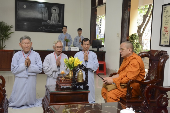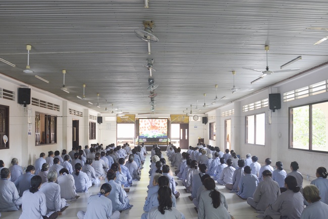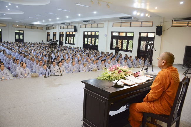 This morning Dec 29, 2017 (Nov 12, lunar calendar), based on the invitation of the retreat organizer, Senior Venerable Thich Buu Chanh, Standing Member of the Governing Council, Deputy Head of the Central Committee of Vietnamese Buddhist Congregation, Deputy Director of the Vietnam Buddhist Academy in Ho Chi Minh City, Abbot of Phuoc Son monastery, Dong Nai province, has delivered a Dharma talk to practitioners of 87th Seven-Day Retreat on the subject "Doi Kho Dao Vui".