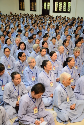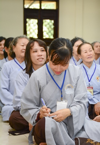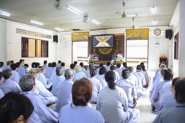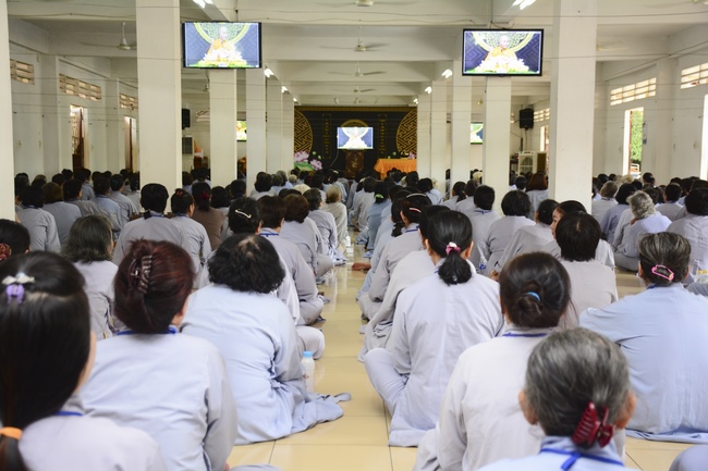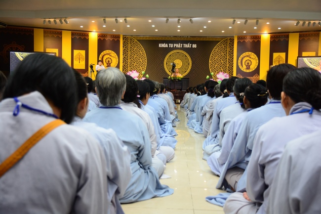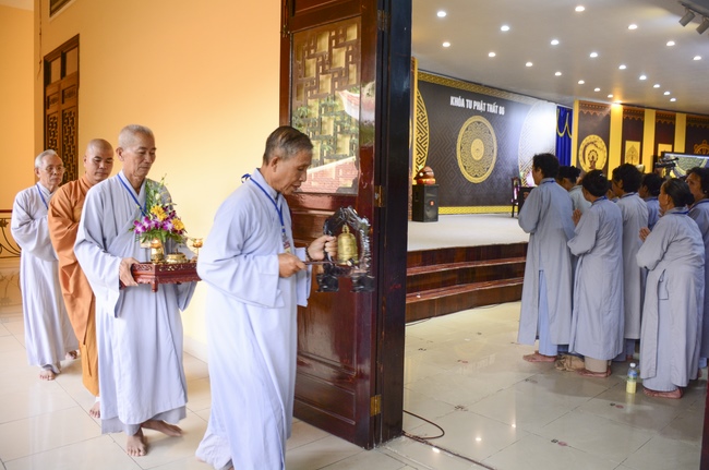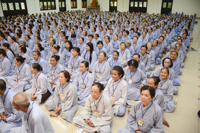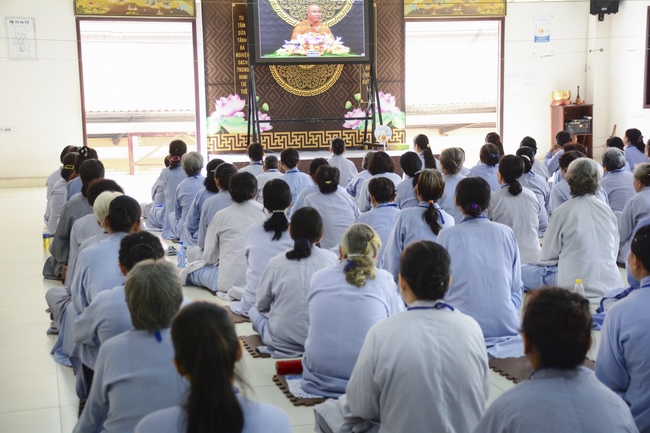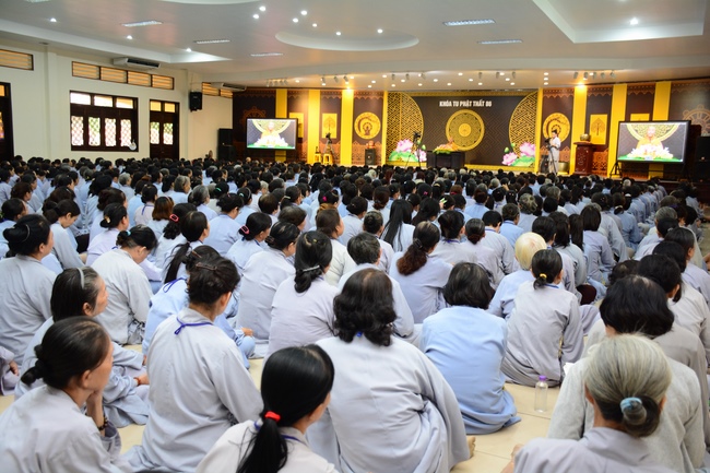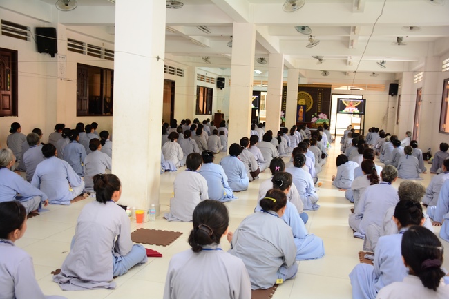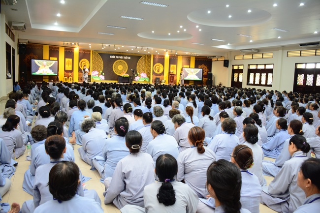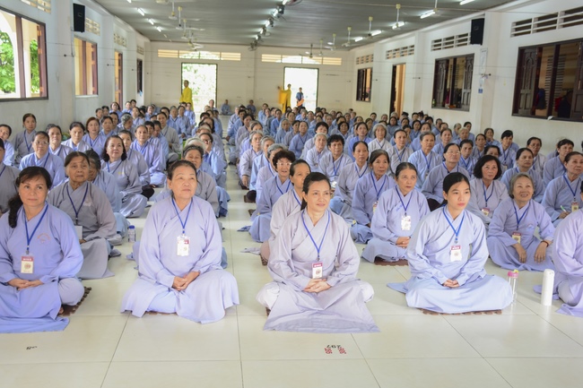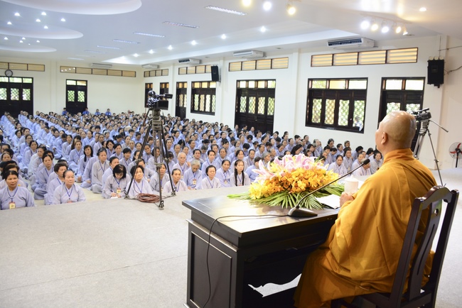 In the morning of Sep 16, 2017 (Jul 26, lunar calendar), based on the invitation from the Retreat Organizer, Venerable Thich Tri Minh, lecturer for HCMC Buddhism Study Institute, came to deliver the Dharma talk on the topic “Offering Merit” to practitioners.