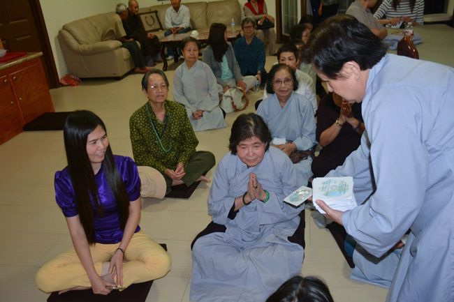 At the end of the Dharma talk, Venerable Thich Chan Tinh presented the DVD film “Search for the Enlightenment†as the Dharma gift to the participants.