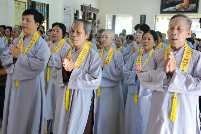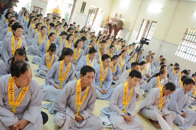 According to the Venerable Abbot, despite Phap Hanh Pagoda’s limited area,\r\none-day cultivation is monthly held with the participation of more than 100\r\nBuddhists, and this is the 5th time. Senior Ven. Thich Chan Tinh complimented\r\non the Abbot’s propagation and Buddhists’ earnest learning. He said: “It’s hard\r\nto be a human being, to believe in the Dharma and to go to pagoda. So now you\r\nare in great conditions that being a human, being able to hear the Dharma and\r\njoining a Bodhimandala. Hence, you should cultivate seriously; not only for your\r\nown but it’s your responsibility to help the other people and Three Treasures.\r\nBuddhist should practice five precepts: not killing, not stealing, not doing\r\nsexual misconduct, not lying and not drinking alcohol. It’s recommended that\r\nBuddhists should come to pagoda frequently to practice and keep the five good\r\nprecepts in order to build a better family and society.