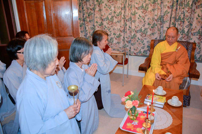 During the session, the Venerable shared the etiquette in dealing with people as "eating, speech, cover, and open" which were simple but necessary for us to learn.
