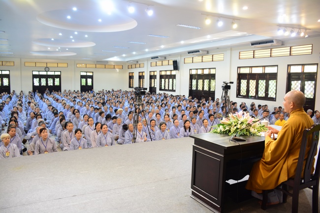 This morning Sep 11, 2017 (Jul 21, lunar calendar), based on the invitation from retreat organizer, Venerable Thich Dong Thanh, Abbot of Thien An pagoda (Binh Dinh ward, An Nhon town, Binh Dinh province), Head of Preaching Department and Principal of Binh Dinh Buddhism Study Institute (Intermediate level), has come to deliver Dharma talk to practitioners of 86th Seven-Day Retreat on the subject "Four Catastrophic Risks to Human Life". They are: