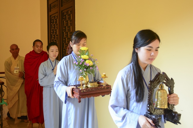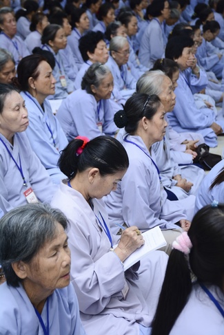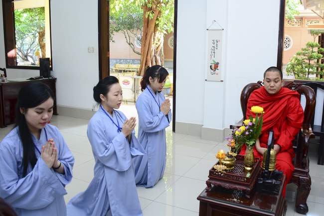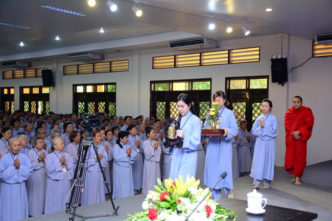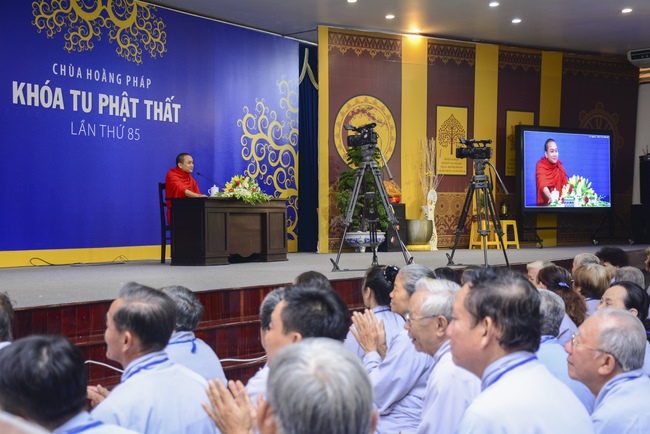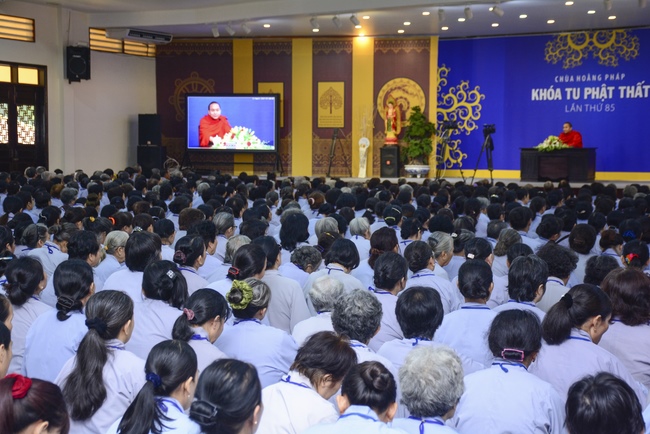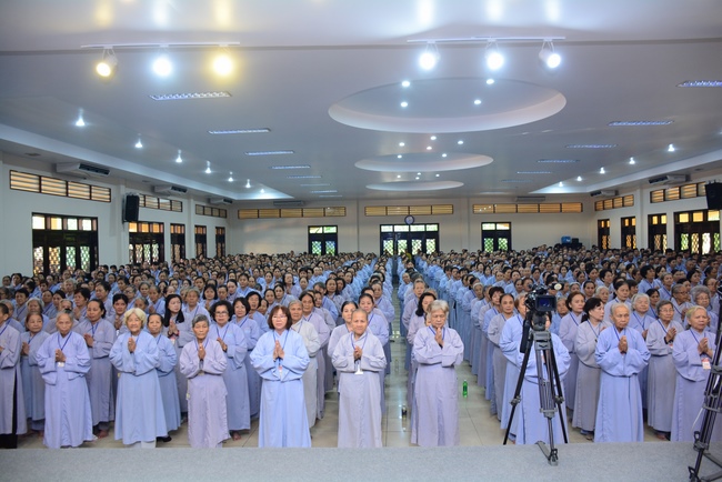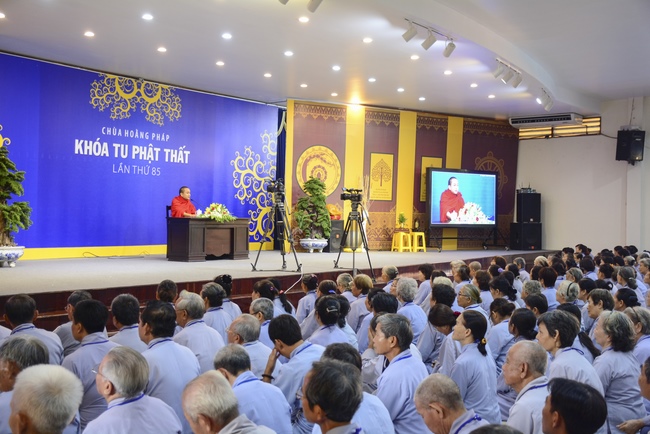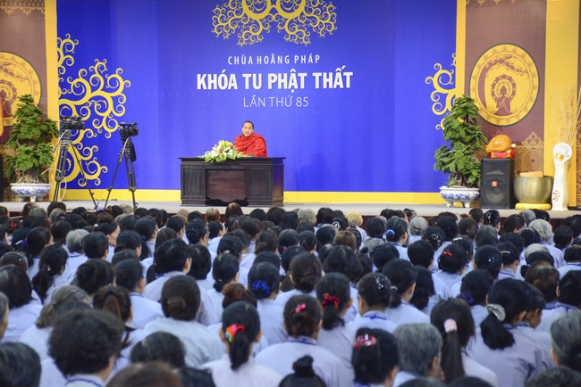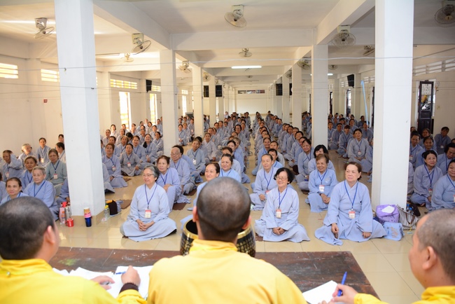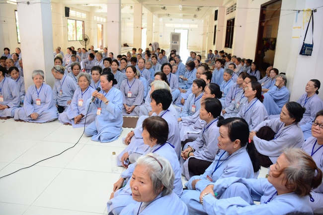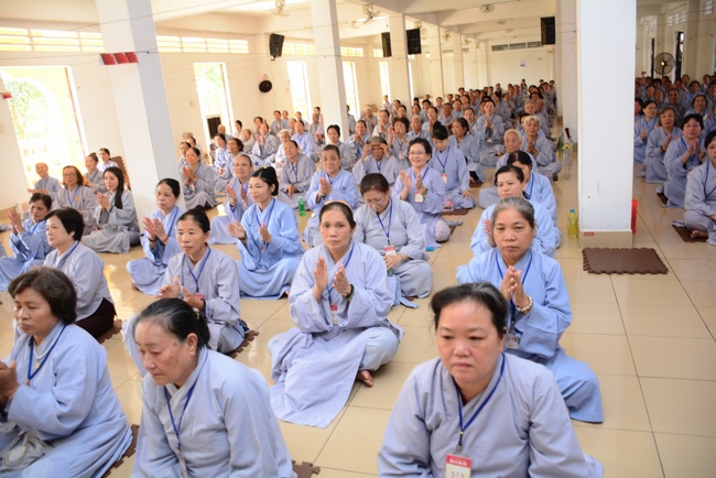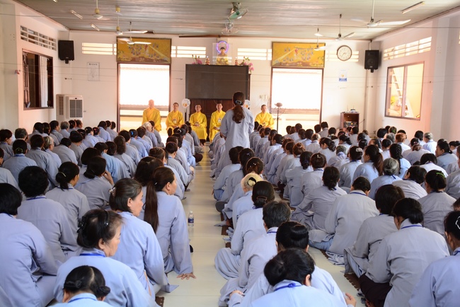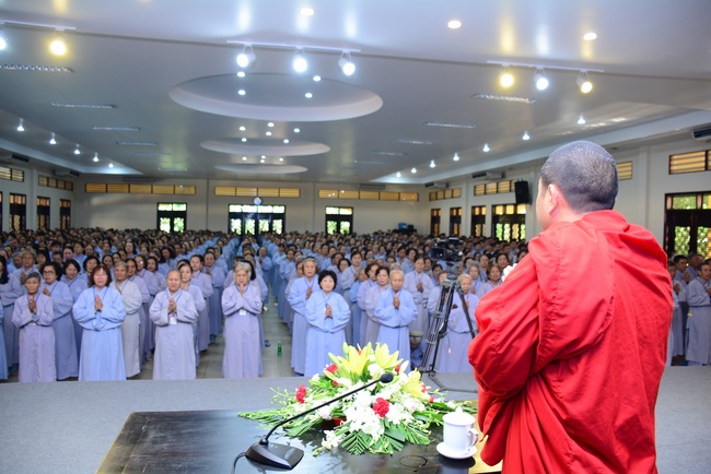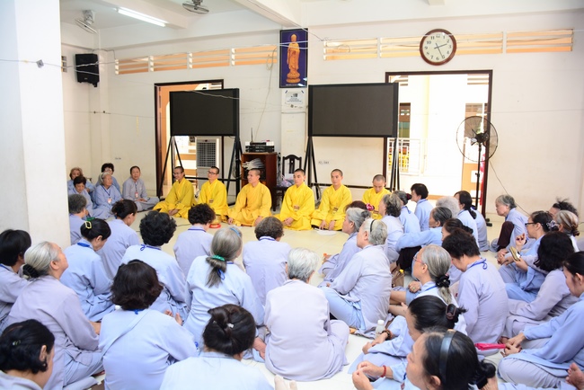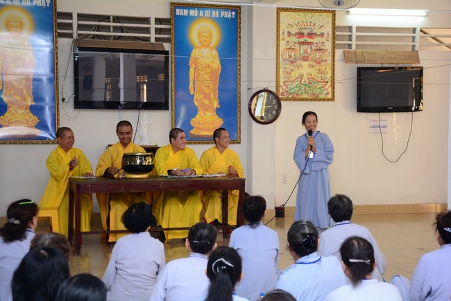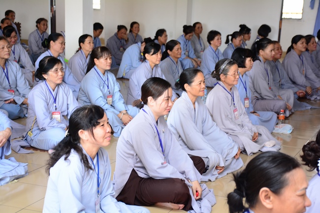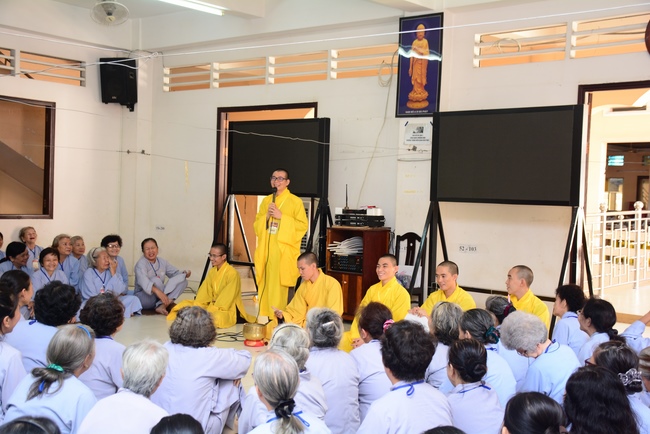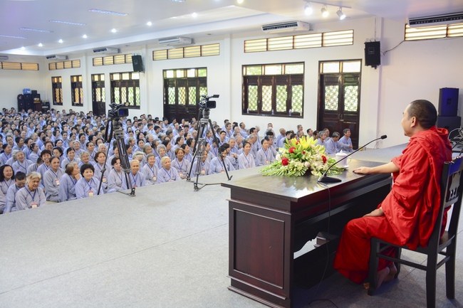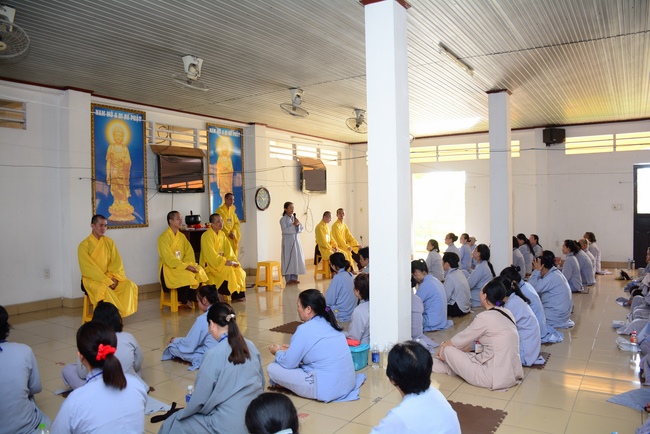 In the morning of April 22, 2017 (Mar 26, lunar calendar), the last day of the retreat, Senior Venerable Thich Thien Minh, abbot of Buu Quang pagoda, District 9, had the Dharma talk to the ashram with the topic "Love your kids properly".