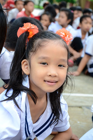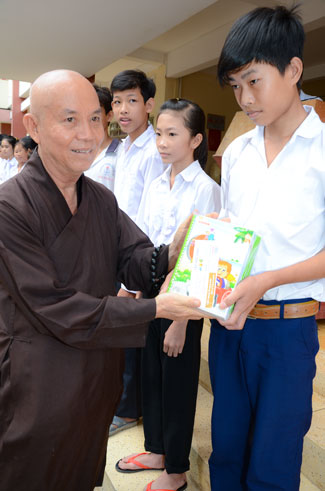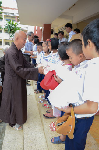 In accordance with the instruction of Senior Venerable\r\nThich Chan Tinh, in the morning of July 28th, 2014 (July 2nd, Horse year),\r\nJunior Venerable Thich Tam Hue and Buddhists came to the Elementary School in\r\nvillage town, South Mocay district, Ben Tre province to present notebooks to\r\npupils.