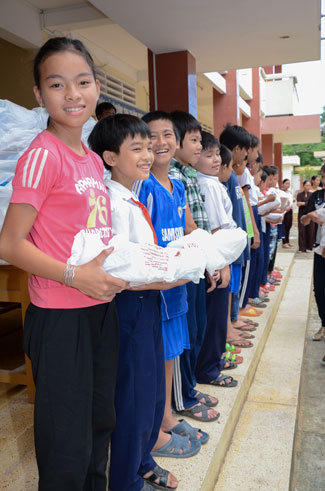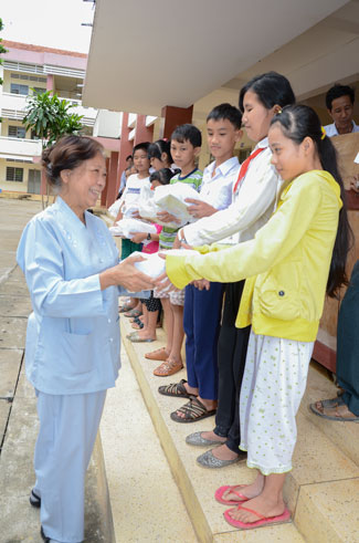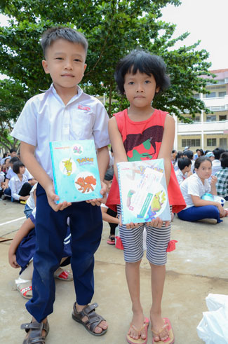 There were 96 pupils given 10 notebooks of five cell’s\r\n100 pages, 329 high school students given 15 notebooks of the four-cell’s.\r\nTotally, there were 5950 notebooks granted with 34,767,000 VND, donated by\r\nBuddhists Liên Oanh, Thúy Kiá»u, Ãi Nữ, Miss Hương, Miss Mỹ, Miss Trinh, nearby\r\nBuddhists. Buddhists Ngá»c Thông helped transportation to the group.