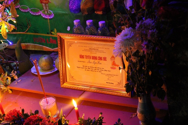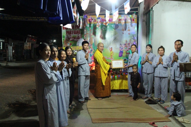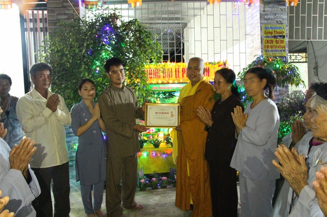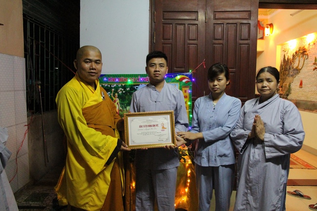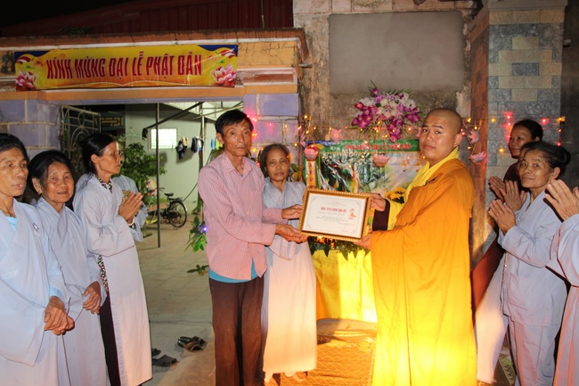 On two days 14th and 15th of April of Rooster Year, Junior Ven. Thich Tam Hung, the Dong Cao pagoda’s abbot, as the organizer’s representative companying with Buddhists came their own houses for visit, celebrated the ceremony and granted merit certificates in attendee families’ joyfulness. After that, the Junior Venerable encouraged all of them who should try to respond strongly to this movement in every year. Each of us has to study and search more for the Buddha’s life. Since then, we will select good lessons for practicing to get peace and happiness in daily life.