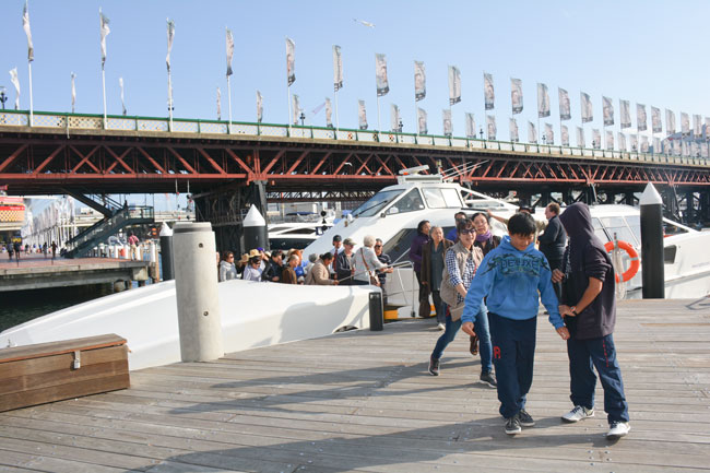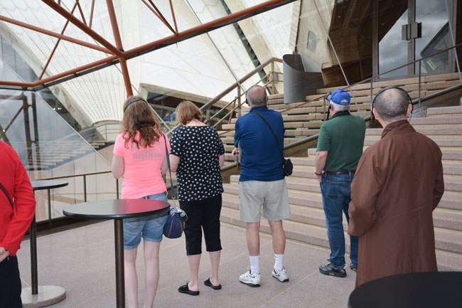 The group also took an occasion to admire Opera House on the\r\nfar side, across the architectural constructions and visitors feel the\r\nsunshine, clouds, wind and swash by a boat on Rose Bay.