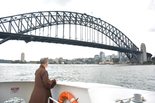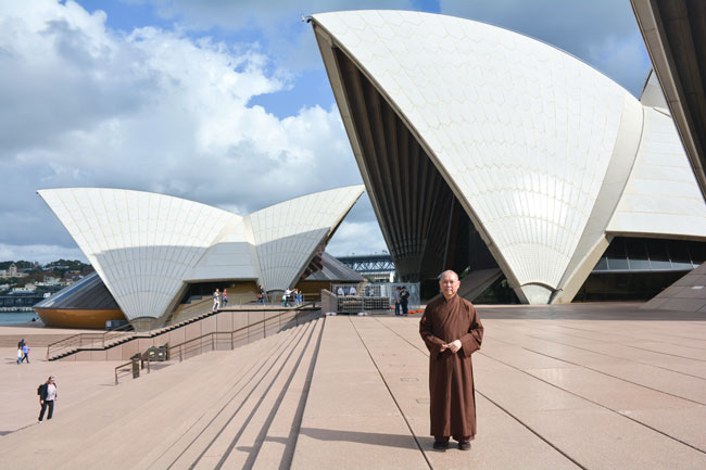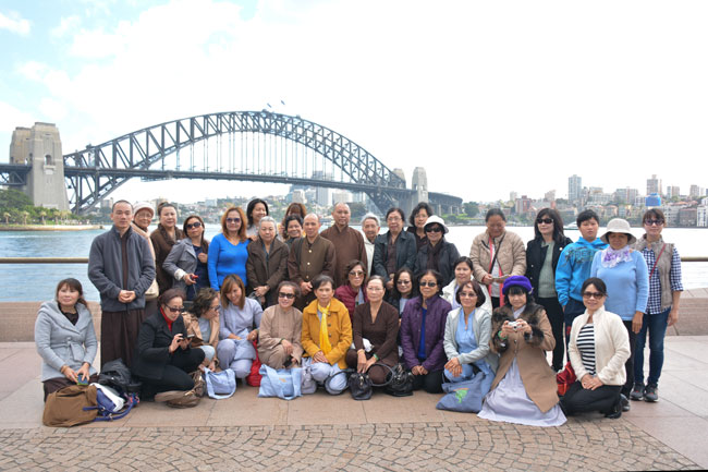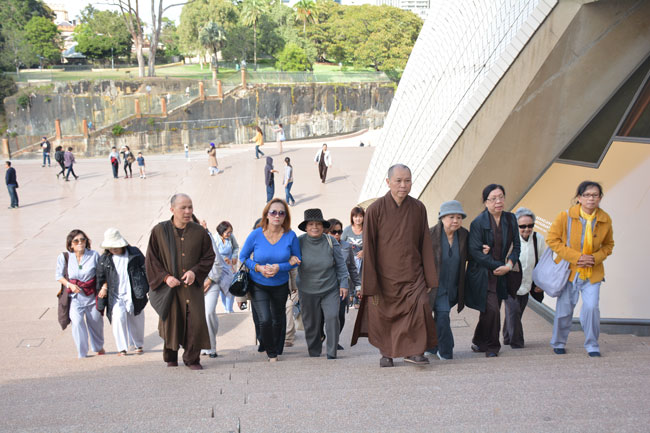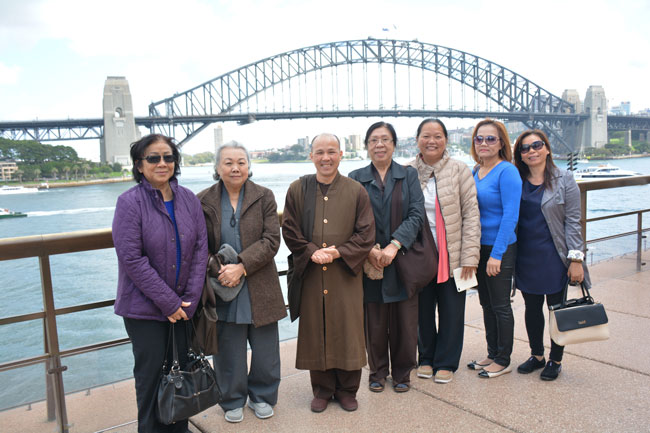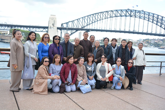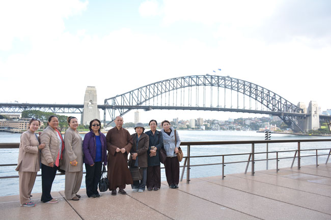 After nine days propagating the Dharma in Australia, on April 13th, 2015, Senior Venerable Thich Chan Tinh and Buddhists visited some sights in Sydney Harbour City such as Opera House, Sydney Tower, Sydney Harbour Bridge, etc.