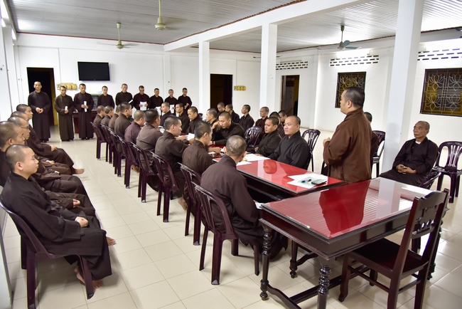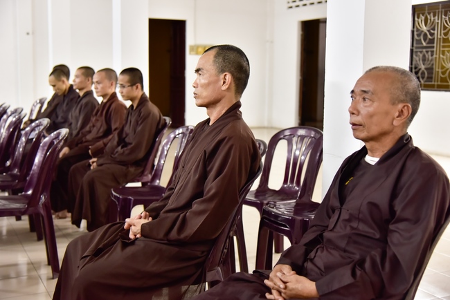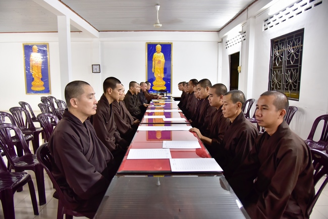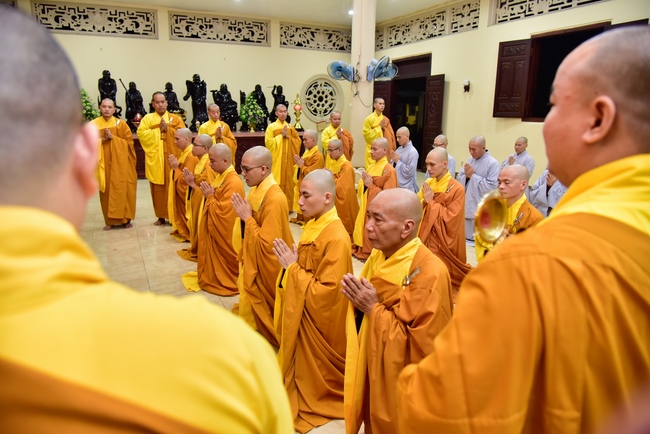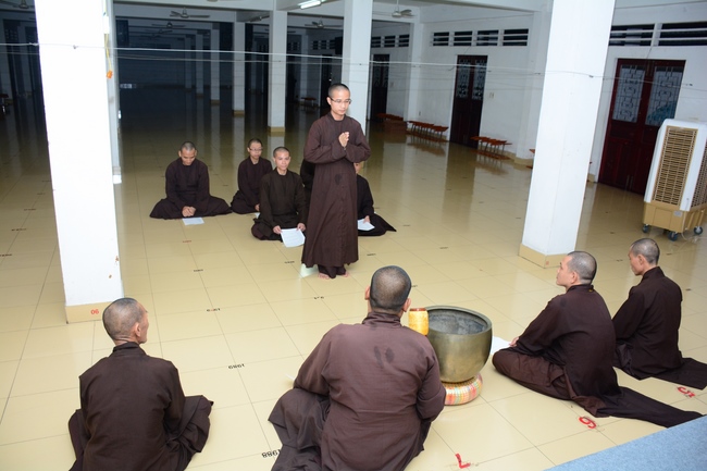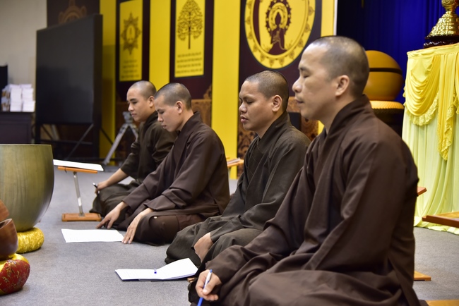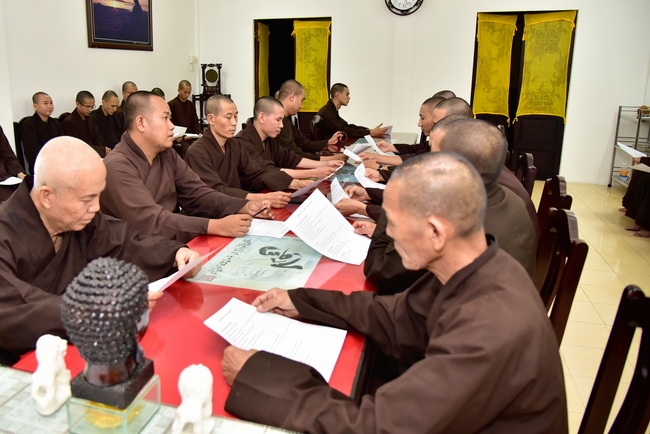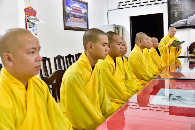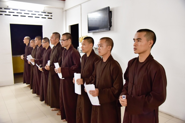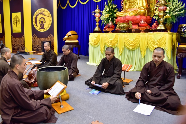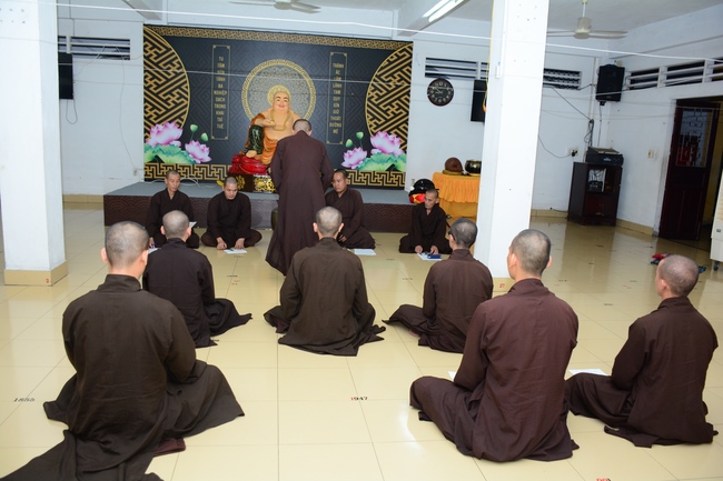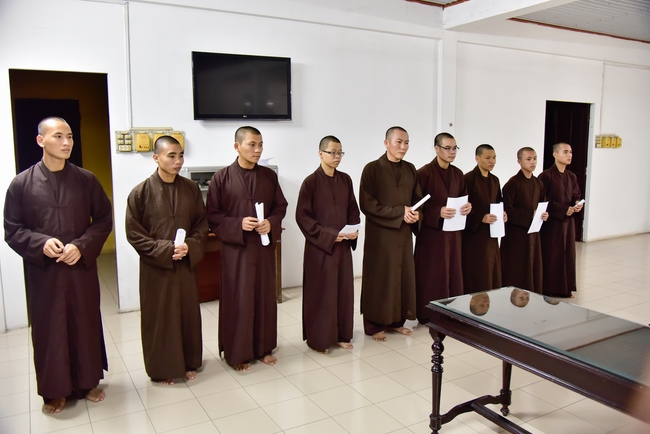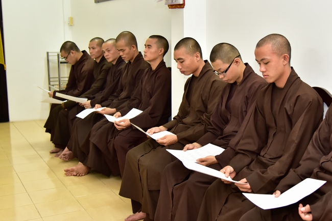 Before joining Phap Loa Ordination organized by Executive Board of the Buddhist Church of Vietnam in Dong Nai province at Truc Lam Tri Duc Zen Monastery (Aug 19 – 23 lunar calendar), clergy candidates from Hoang Phap Sangha have had the examination and rehearsal to be eligible for the ordination. Ordained monk must be a talented, virtuous and qualified one to learn Buddha teachings and preach Dharma.
