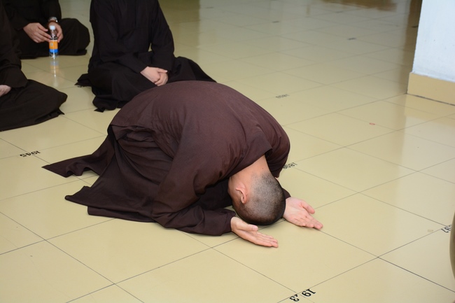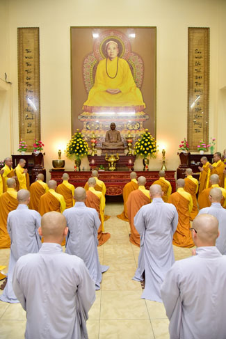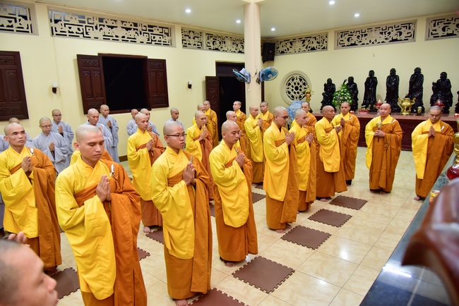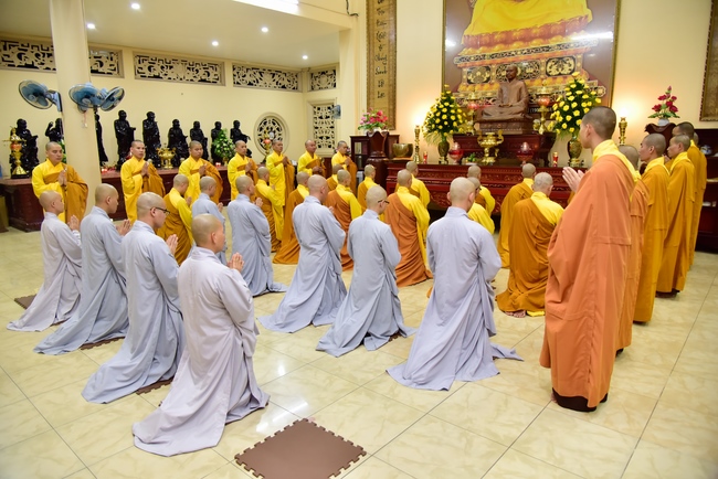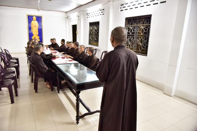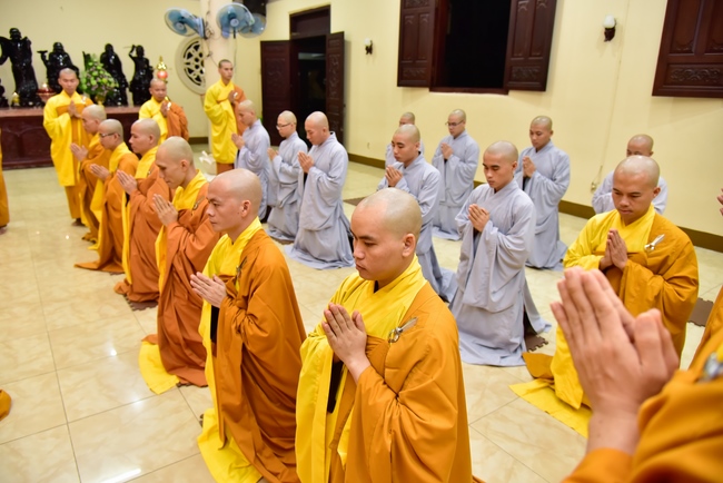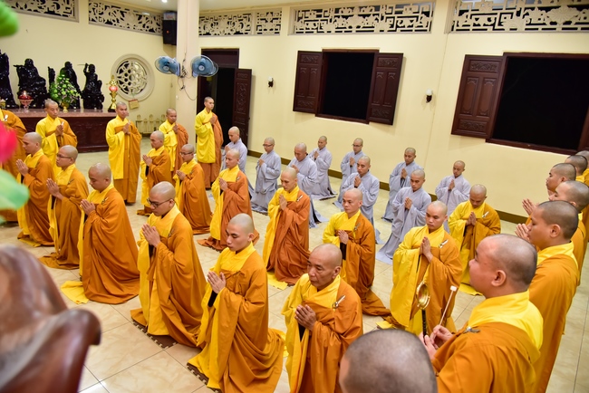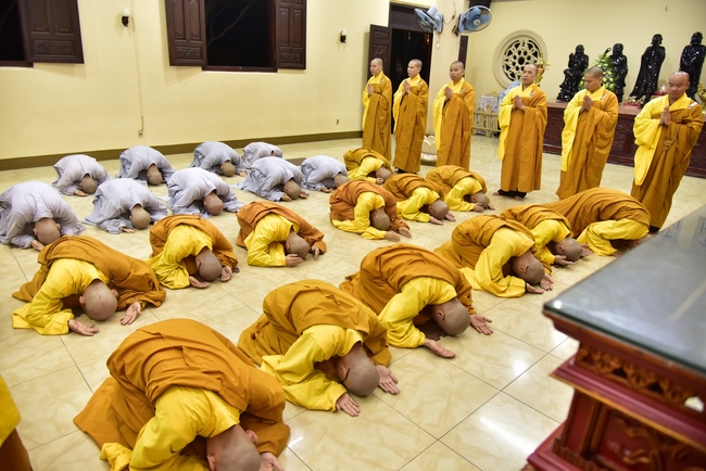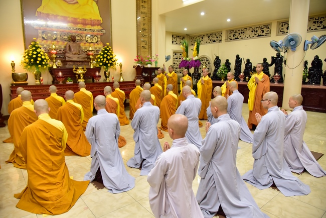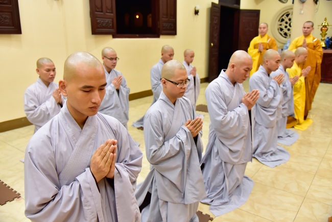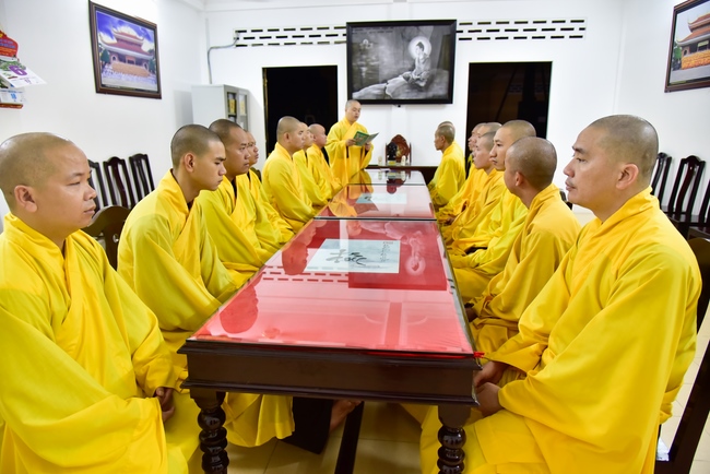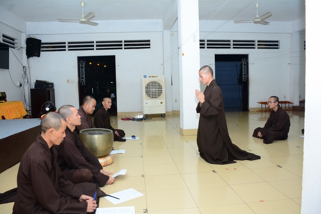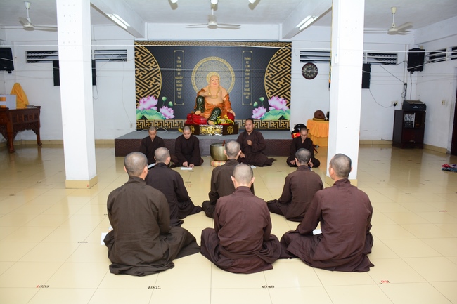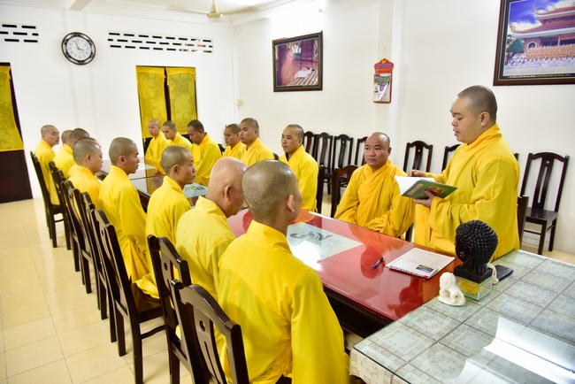 Before joining Phap Loa Ordination organized by Executive Board of the Buddhist Church of Vietnam in Dong Nai province at Truc Lam Tri Duc Zen Monastery (Aug 19 – 23 lunar calendar), clergy candidates from Hoang Phap Sangha have had the examination and rehearsal to be eligible for the ordination. Ordained monk must be a talented, virtuous and qualified one to learn Buddha teachings and preach Dharma.