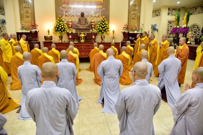 The examination and rehearsal were about:regulatory frameworkfor clergy people, individual virtue, etiquette for clergy people, rituals of chanting and verses, worship activities, how to use worship facilities… Eligible candidates have been joyfully approved by the Sangha for the ordination this time. The rest ones need to practice more and wait until next time.