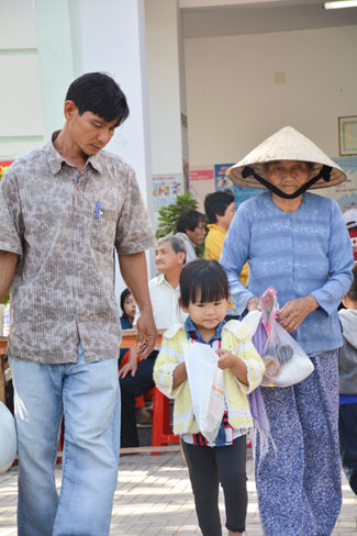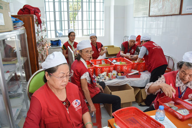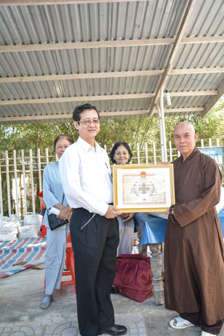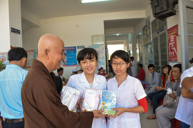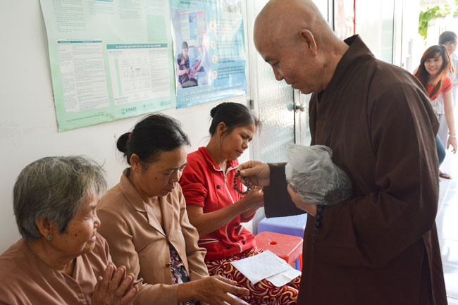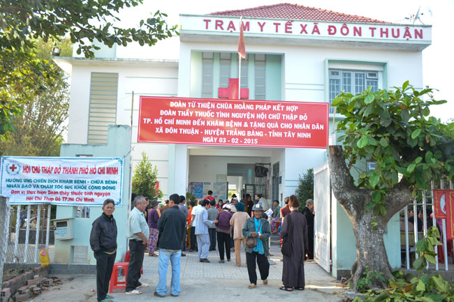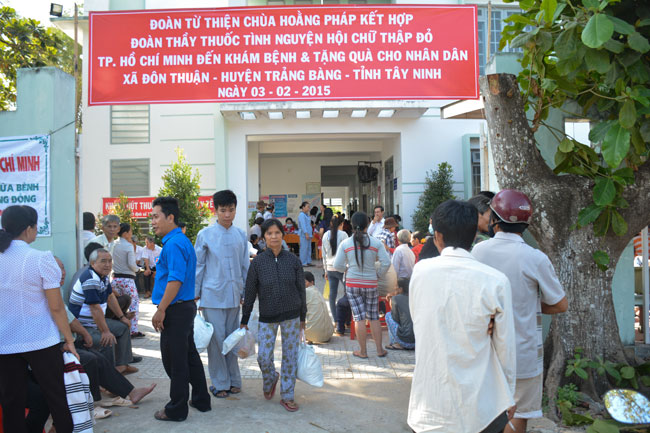 In the morning of Feb. 3nd, 2015, by instruction of Abbot Senior Venerable Thich Chan Tinh, Junior Venerable Thich Tam Hue and Buddhists of Hoang Phap pagoda collaborated with voluntary doctors of the Ho Chi Minh City Red Cross to health clinic station of Don Thuan commune, Trang Bang district, Tay Ninh province to examine patients’ health, offer medicine and give presents to the 200 poor patients.