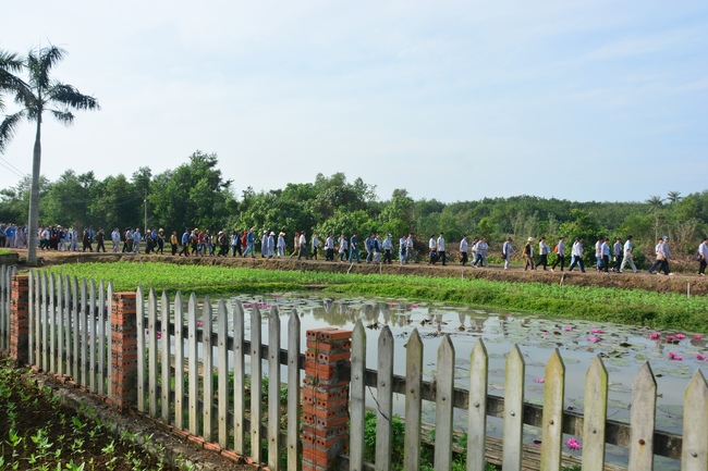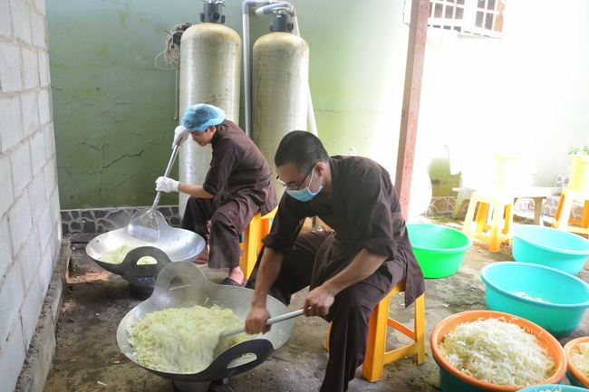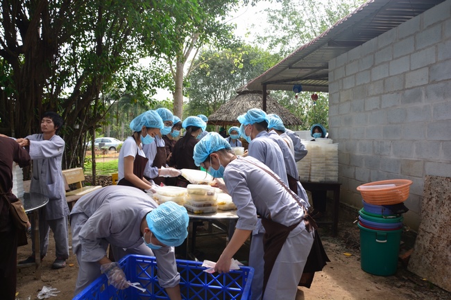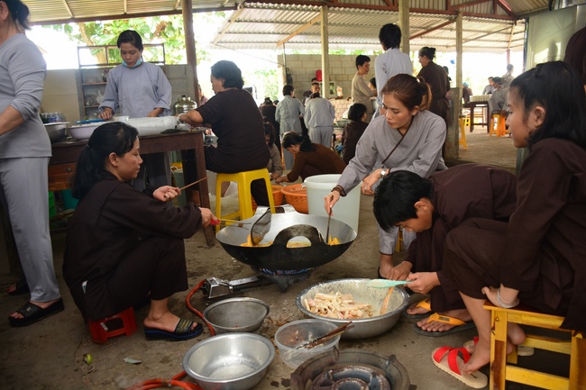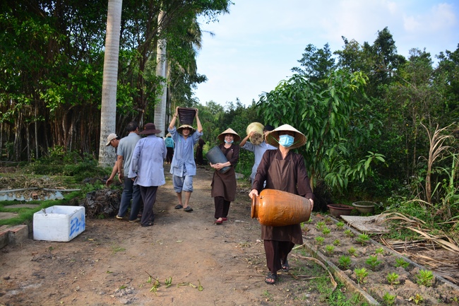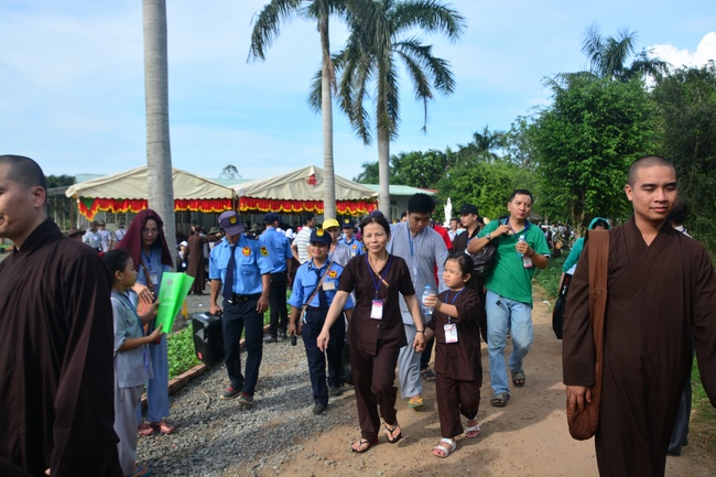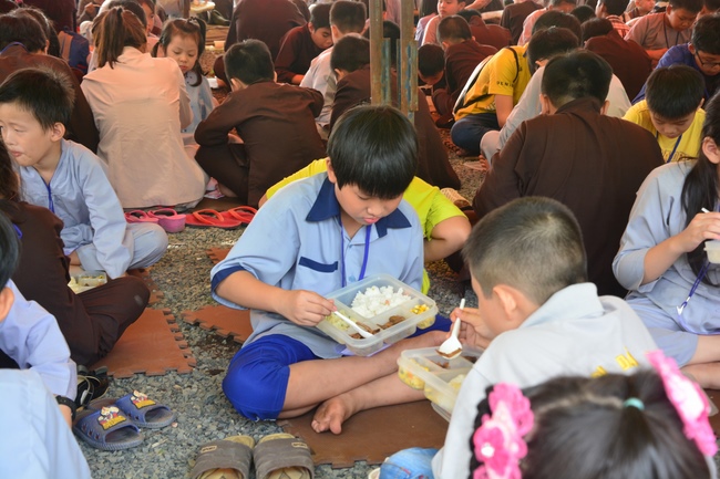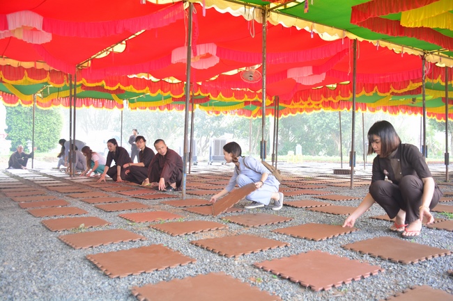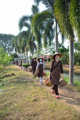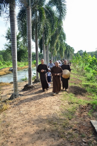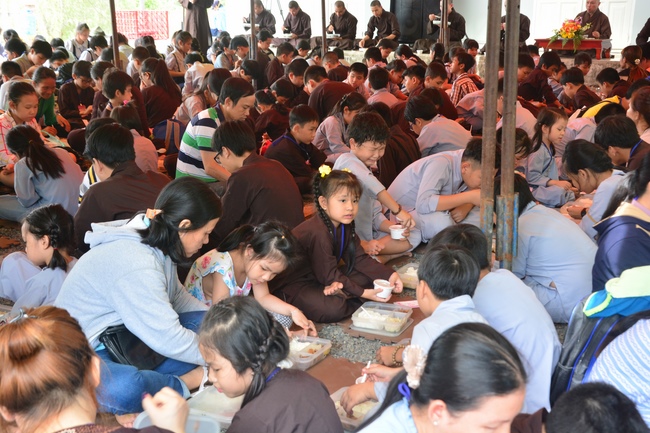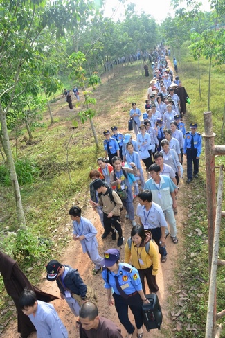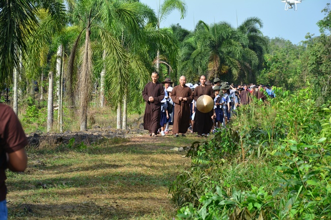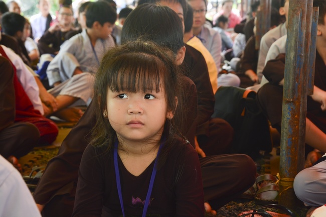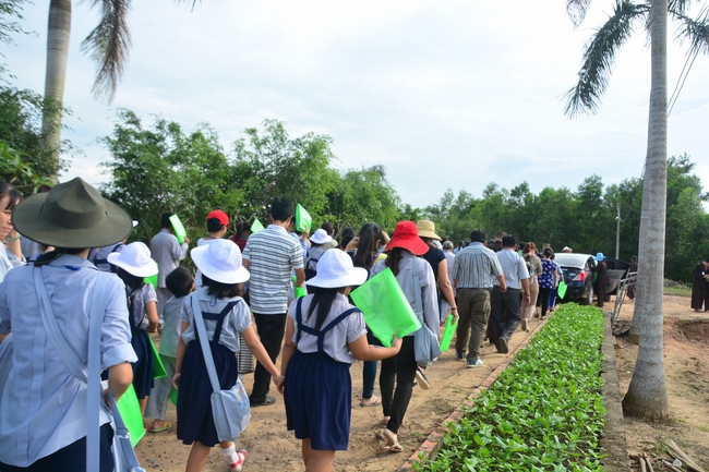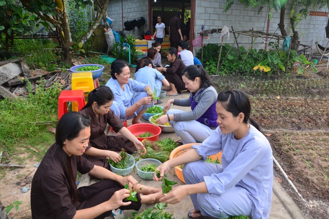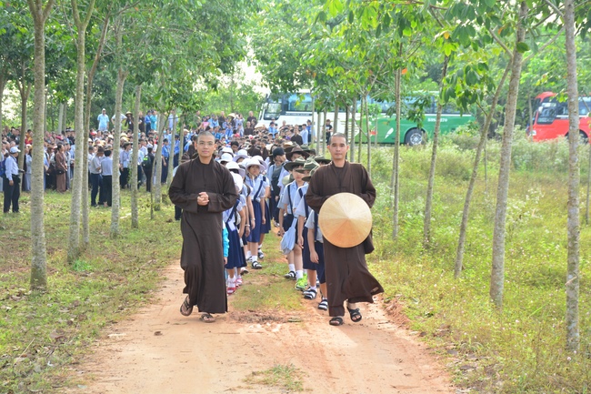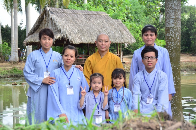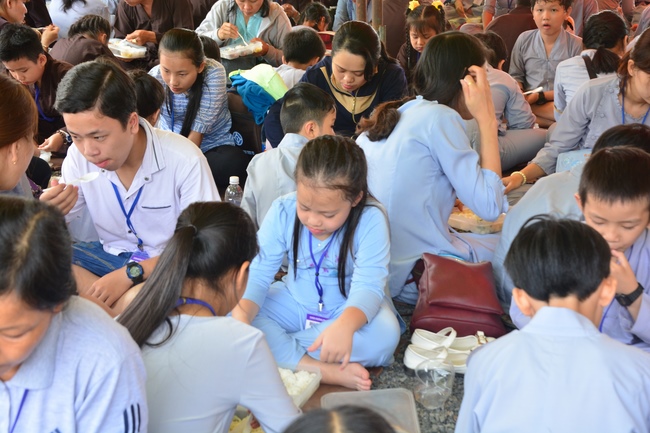 In the morning, after gathering at the cultivating area, Senior Venerable Thich chan Tinh, Abbot of Hoang Phap Pagoda, Chief of Organizers led them to meditation walking around the branch pagoda’s area. The steps are peaceful and free in the shining of early morning, the joyfulness on their faces, particularly to the children; because this is the first time they were instructed meditation walking in the nature, far from busy life of crowded streets, the stressful learning time. These meditative walking steps help bring them delight and excitement, which helps them recognize that the cultivating is not the strict and humdrum activity but it begins a meaningful day.