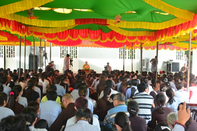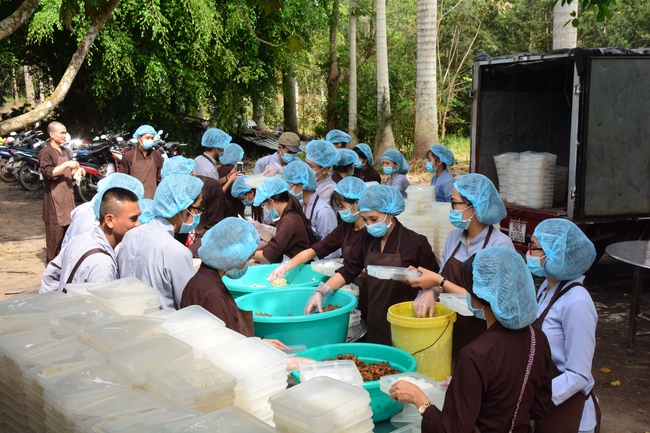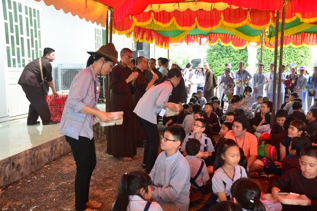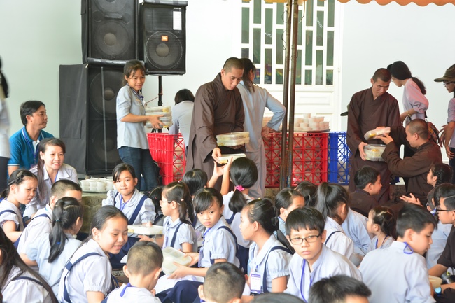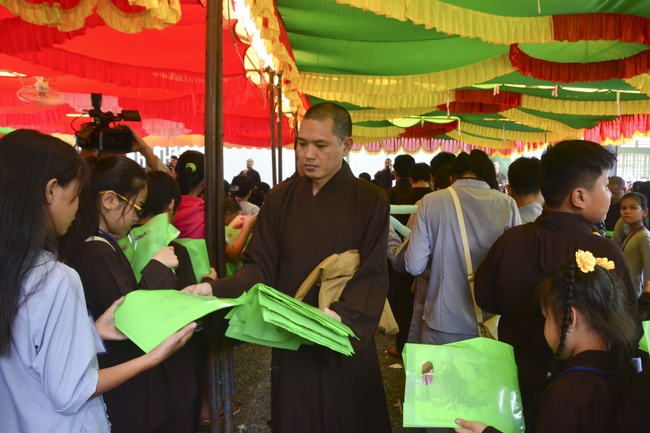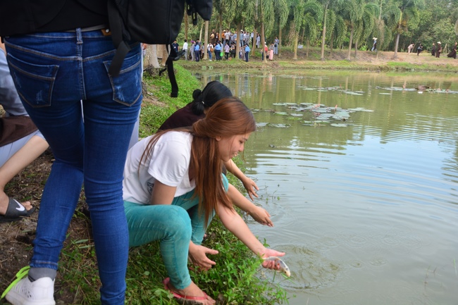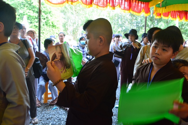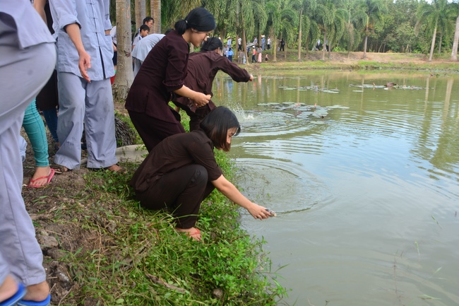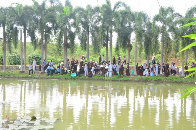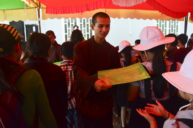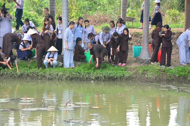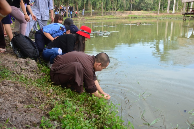 In the afternoon of same day, the children and their parents took souvenir photographs with him. Besides that, they were instructed the rite of releasing animals by the monks in the organization Board at the pagoda’s area.