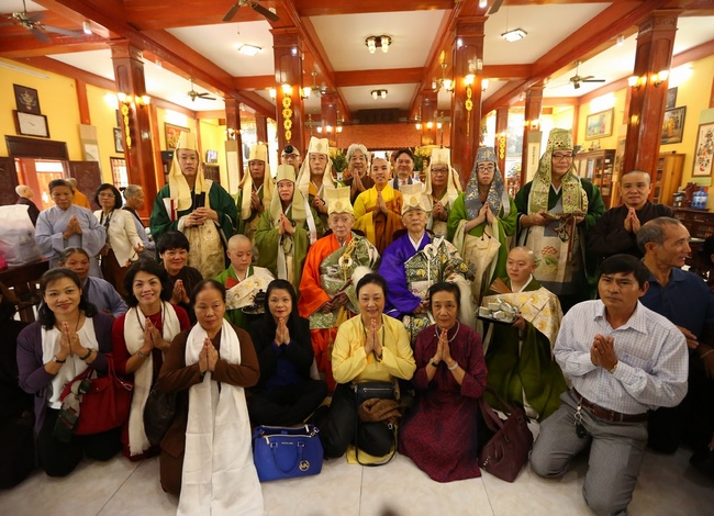 Flower scattering ceremony and the Triratna offerings of the Buddhist Sangha of Japan at Hoa Phuc Temple