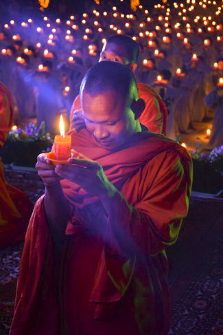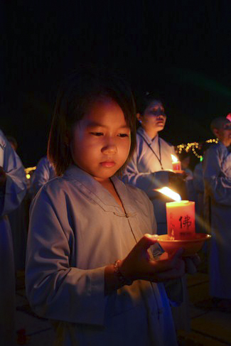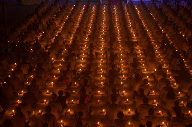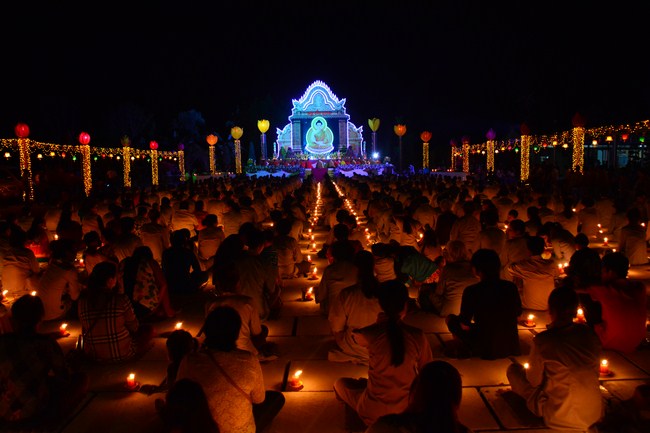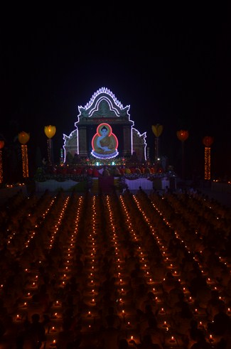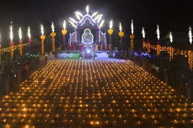 Moreover, this transmission also meant to transmit the belief and truth. Lighting a lamp, on hand, means to light a good thought in our mind, when the clear sighted and wholesome mind was lit as similar as disappearing ignorance mind. Each lamp, on the hand, is the light of love and compassion to cross out the misery about coloured skins and race in order to construct the prosperous and durable Dharma. Each lamp is also a blessing for peaceful world, the happy and tranquil sentient beings; and wishing love and humanism.