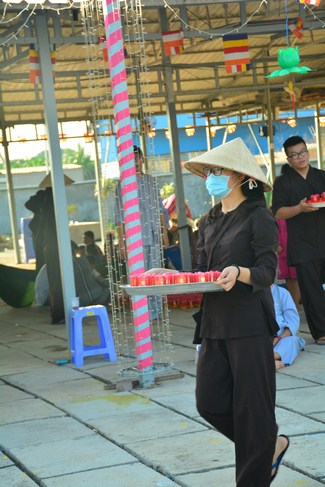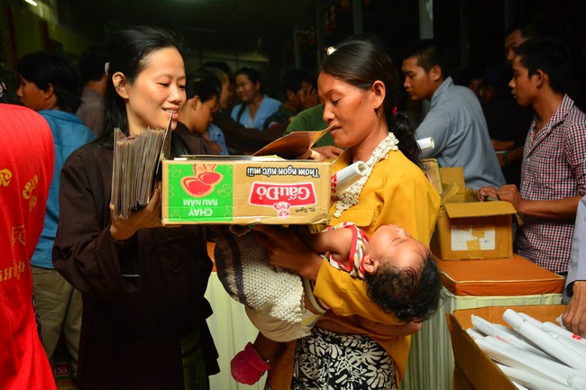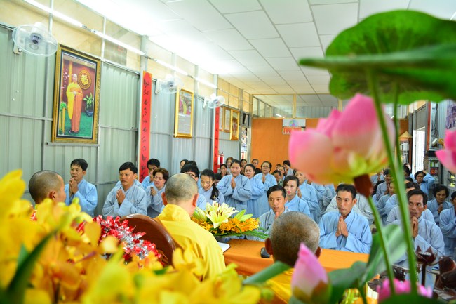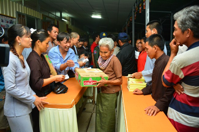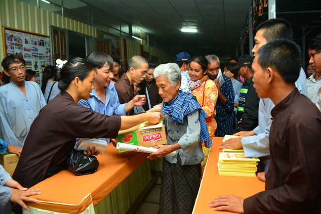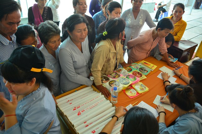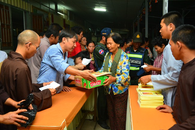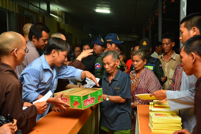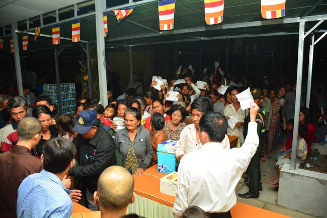 In the afternoon of the same day, on the purpose to sow condition to Vietnamese people who lived in Cambodia, he came to organize the Triratna taking refuge for more than 100 believing people.