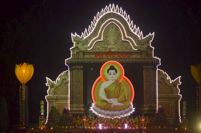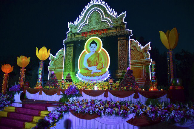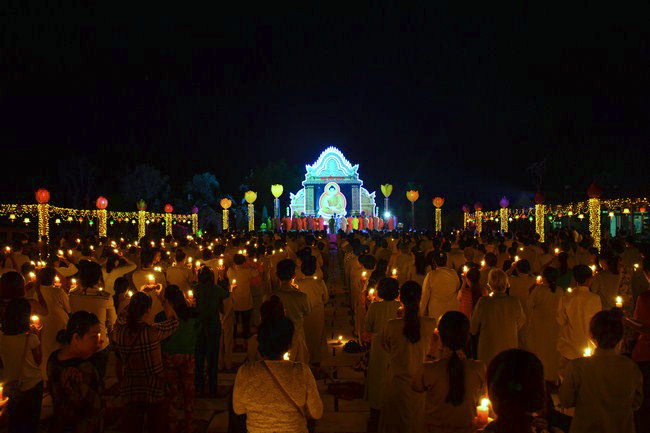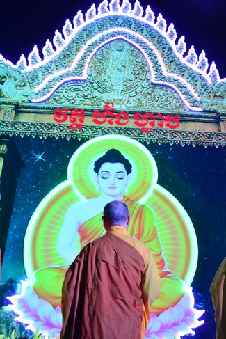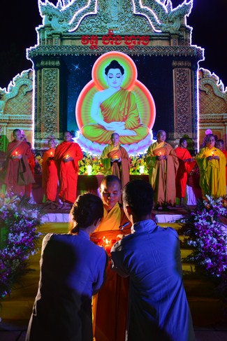Under the instruction from Senior Venerable Thich Chan Tinh, the abbot of Hoang Phap pagoda - Viet Nam as well as the invitation from Junior Venerable Thich Tam Truc, the abbot of Hoang Phap pagoda - Cambodia, the monks and Buddhists of the native Hoang Phap pagoda came to the branching Hoang Phap pagoda at hamlet 1, Svay Rolum commune, Takhama district, Kandal province, Cambodia in order to help celebrate the colored lanterns night for Bodhisattva Siddhartha’s enlightenment.