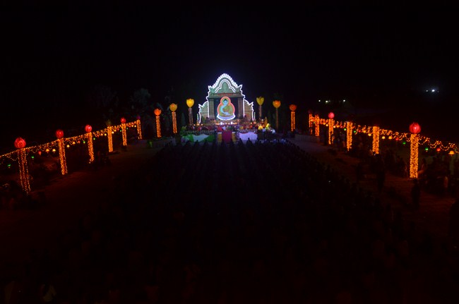 It was the second time that the Junior Venerable abbot organized the colored lantern-lit night at the monastery, although the pagoda was in the process of construction, which the material supply and personnel are limitted, but with the vow of a Tathagata messenger who wants to bring His Teachings to all social strata, he wasn't worried about difficulty in organizing the solemn and meaningful lanterns festival night; and on the purpose of "praying to be Buddha; saving to the sentient beings in samsara".
