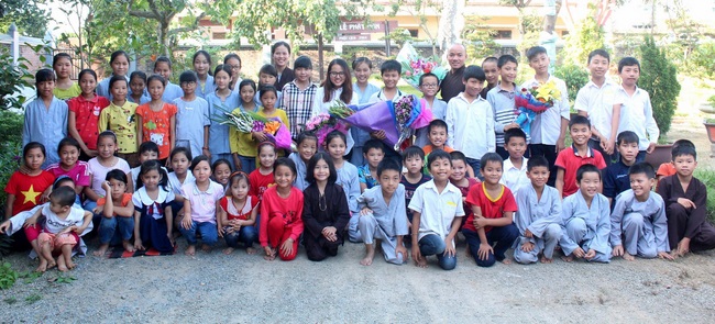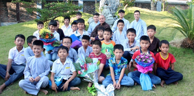 The Venerable has come to poor remote villages and given Dhamar Talks to the Buddhists. At the same time, they also expressed gratitude to Rev. Thich Tam Hoa, Thich Tam Giai, Thich Tam Hao those who not only teach the young generation Dharmas but also give care for them. Besides, many thanks to Ms Thanh Huyen who is always a devoted English teacher despite rain or shine.