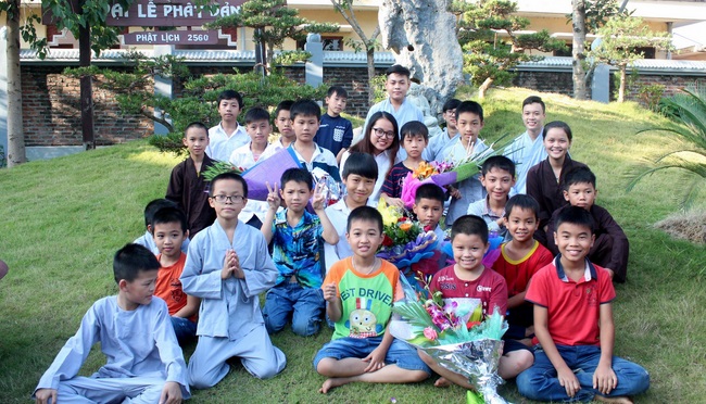 This was the special chance for the Buddhist students to show their love and gratitude to Venerable Sen. Thich Chan Tinh, monks of Hoa Phuc pagoda as well as Ms Thanh Huyen who has been in charge of the English class for a year.