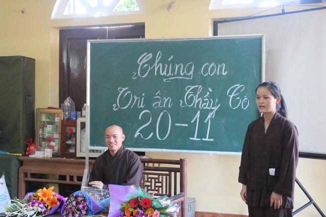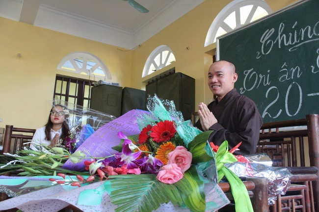 Bunches of nice flowers were extended to the Venerables and teachers as grateful gifts. Songs performed by energetic students also moved the hearts of teachers.
