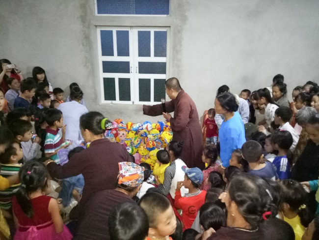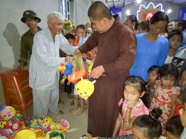 Harmony in that joyful meaning, on the afternoon and eveningof Sep. 11th, 2016 (lunar Aug. 11th, Monkey Year ) with the support of the local authority togather good men and believing women Buddhist everywhere, Dong Cao pagoda organized “GREETING MID AUTUMN FESTIVAL†for the young and children on the area of Nga Son district with many attractive iterms.