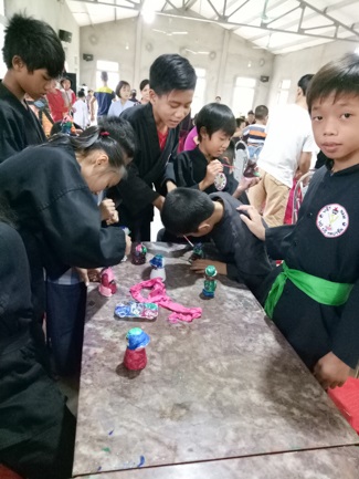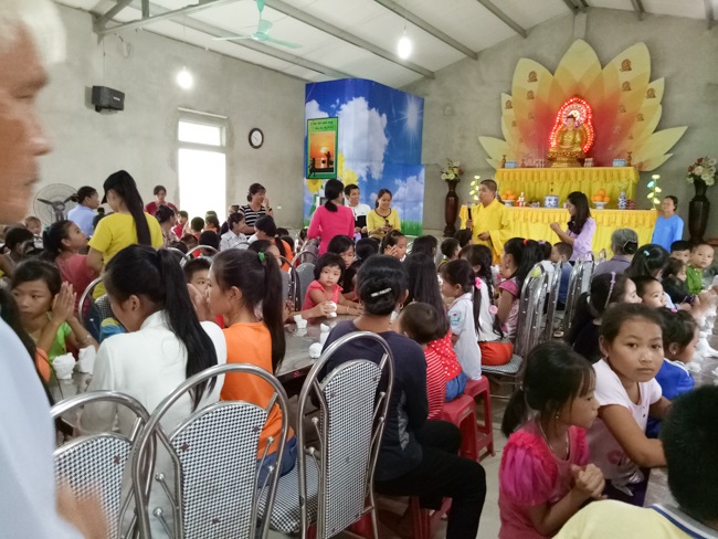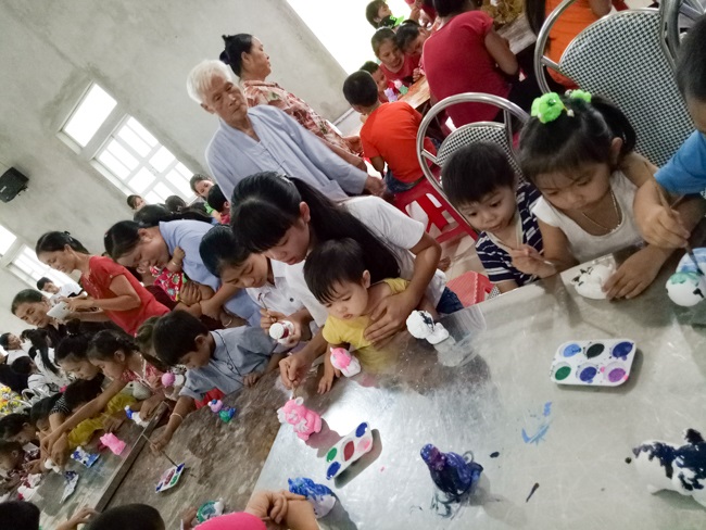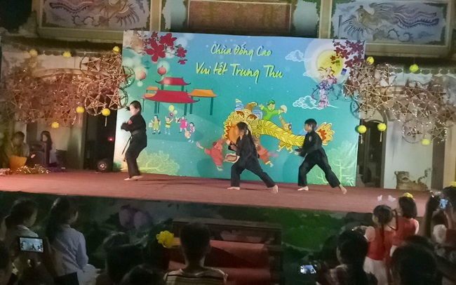 Beginning was the statue painting program – a useful and simple game - helps develop their creative abilities. After having the meal at pagoda, each of them received a candle for their lantern parades. When returning pagoda, they were instructed reading the verses named “Graterfulness†by Junior Thich Tam Hung, which was composed by Senior Venerable Thich Chan Tinh. This helps they understanding the merits of their parents, teachers, nation, etc, and then the iterms of national tradition Kungfu and performance which was showed by them.
