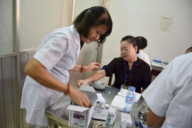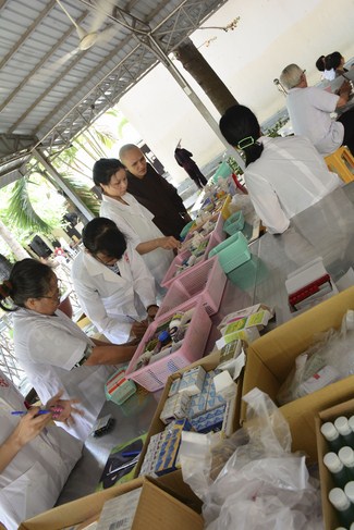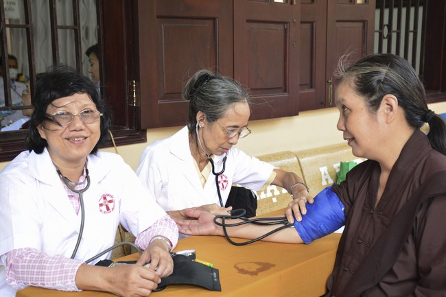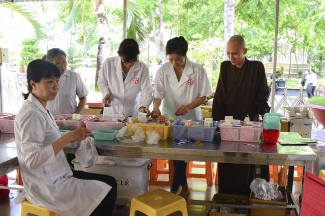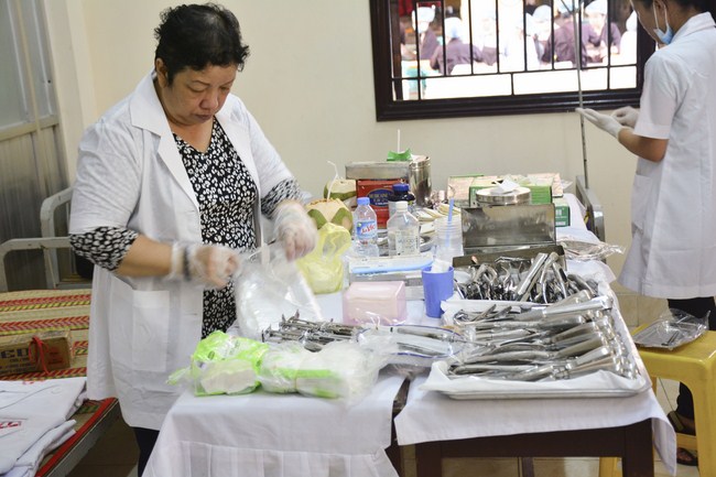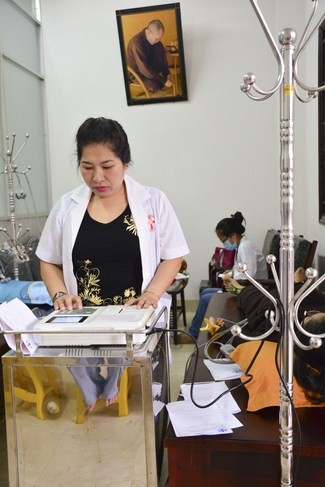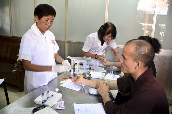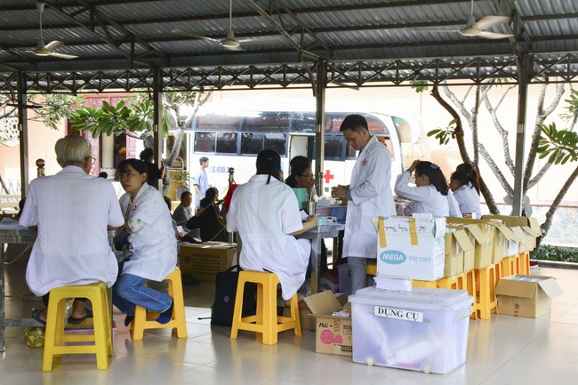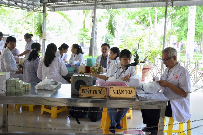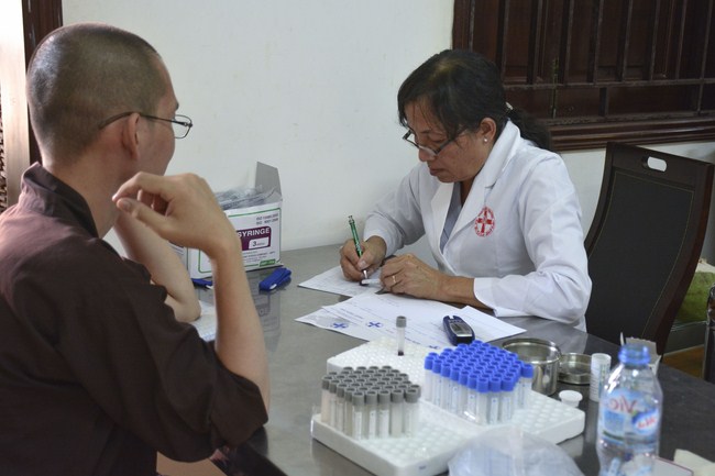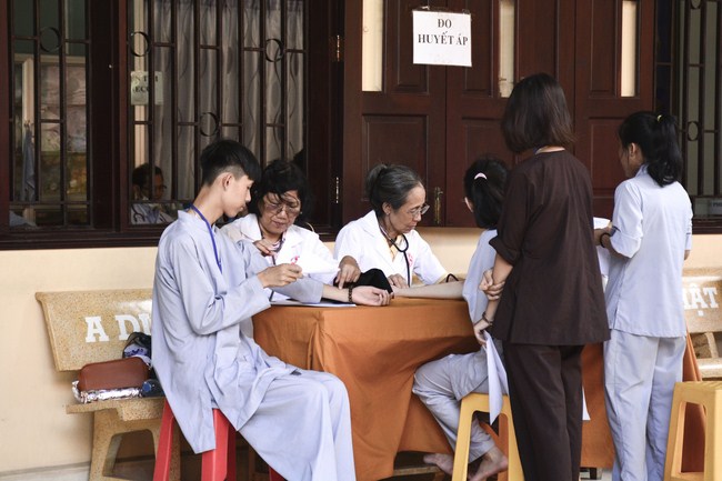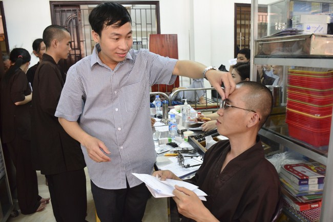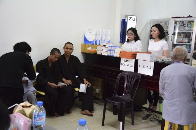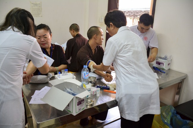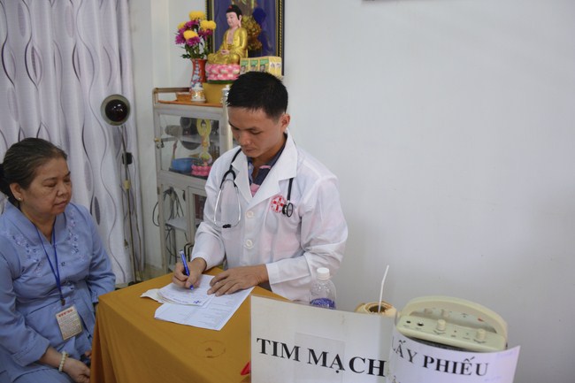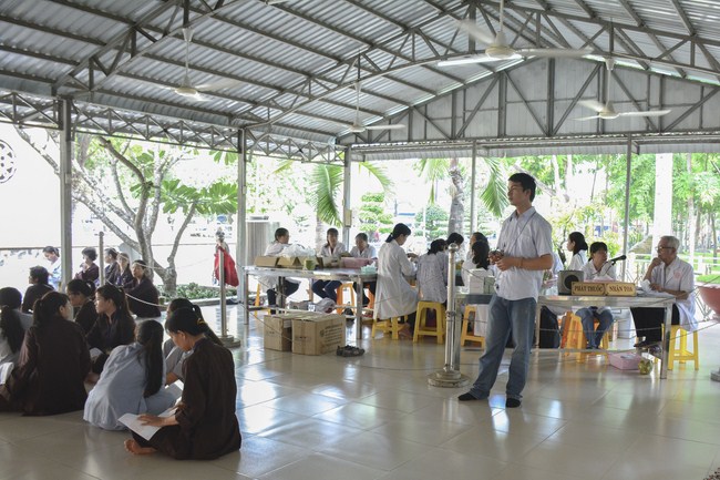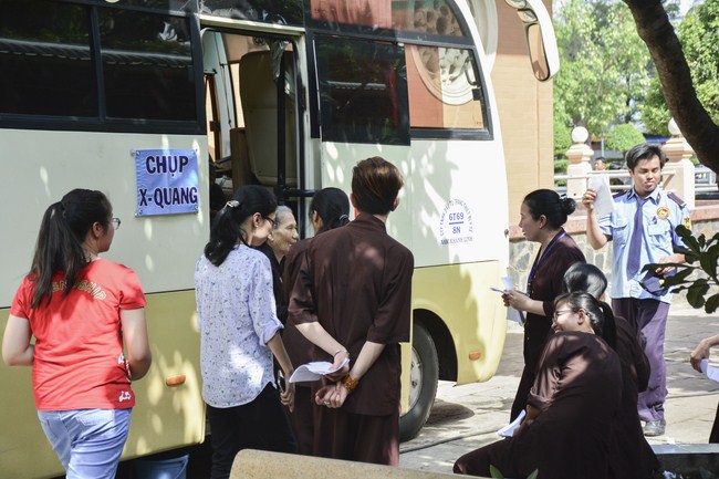 From 6 am, 68 doctors, nurses, pharmacists, ... were present at the pagoda to prepare for the work. The advanced diagnostically technical equipments are also be taken to the temple to serve the examinations. The program includes an ultrasound examination, ECG measurements, X-rays, eye exams, interdenominational, blood tests, physical exams ...
