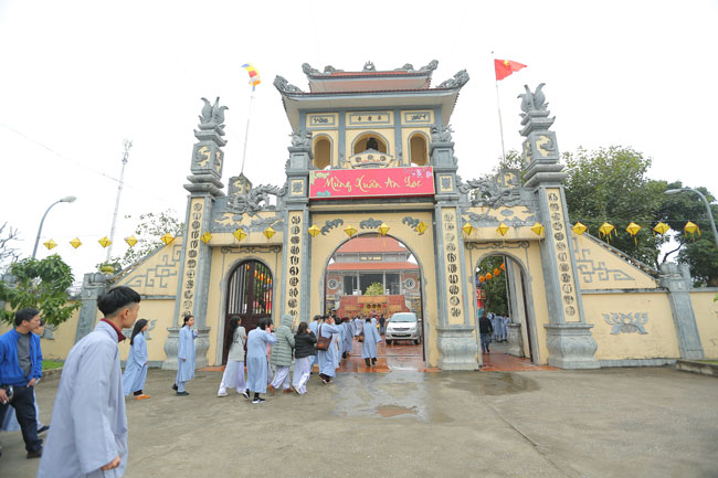 Following that nice traditional, on February 25th, 2018 (January 10th, the Earth Dog Year), Venerable Thich Tam Ky, representative of Hoa Phuc pagoda, Hanoi City introduced the Buddhists return to the Buddhist ceremony in the beginning of spring at the Tay Khanh Pagoda. Quang Hung district, Kien Xuong ward, Thai Binh province.