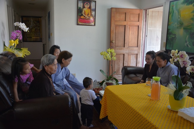 In the morning of Oct 12, 2017, Senior Venerable Thich Chan Tinh and monks from Hoang Phap sangha had a visit at the residence of Buddhists Duyen - Hau in Santa Ana, California.