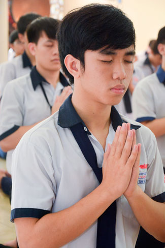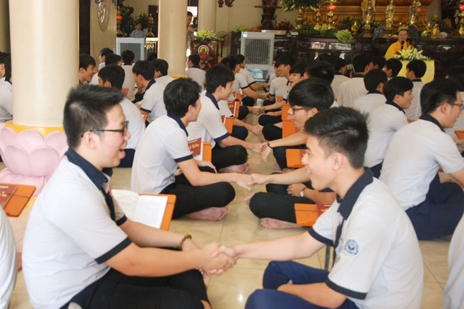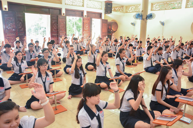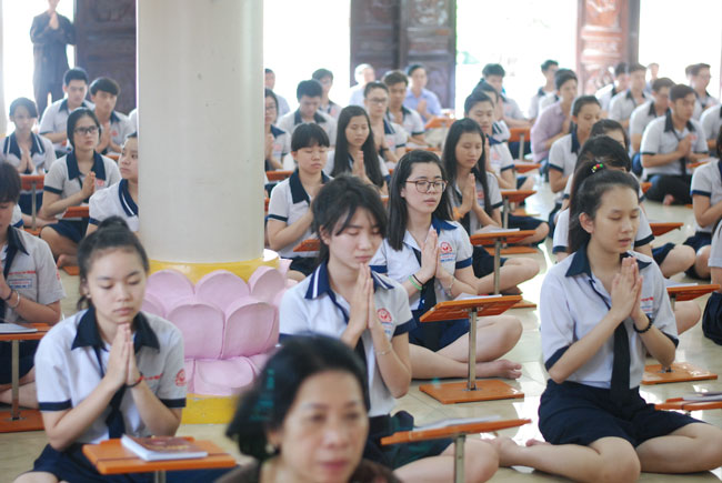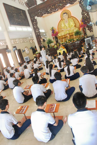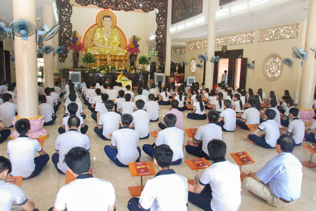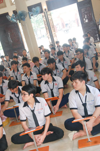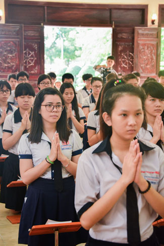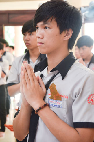 Praying in Buddhism spirit is completely different than the other religions. Because true Buddhists do not reply on favors or calamities on Gods or dieties. Buddha is “a conscious personâ€. He guides people the conscious life way to have merciful and wisdom. In this spirit, students from HCMC visited Hoang Phap pagoda to have the rituals of praying ceremony wishing for contemplating Buddha’s pur beauty, from which they improve judicious abilities, unruffled of one ‘self to be confident enough to take part in the examination.