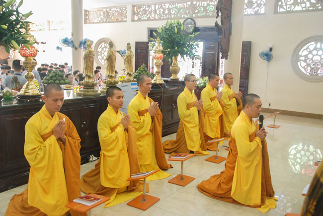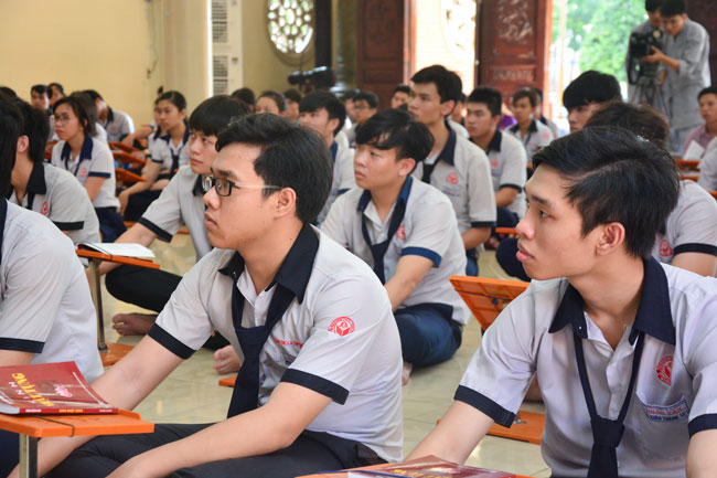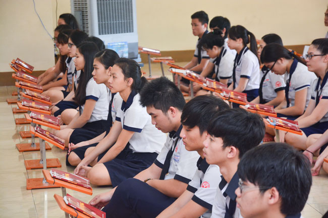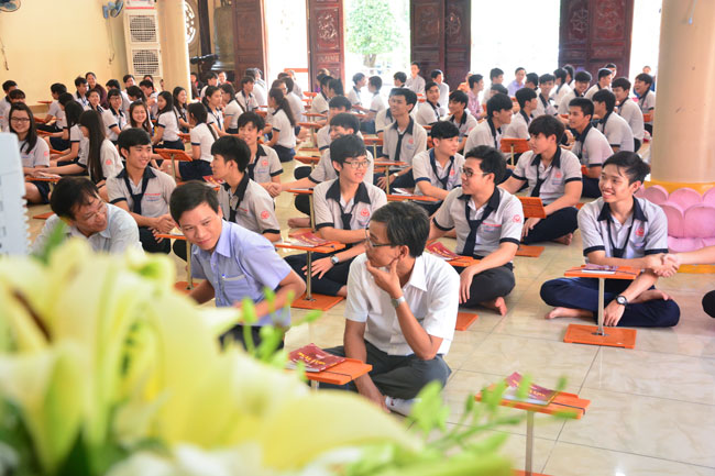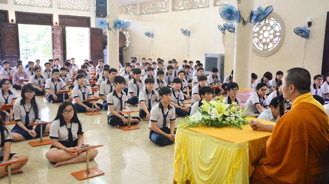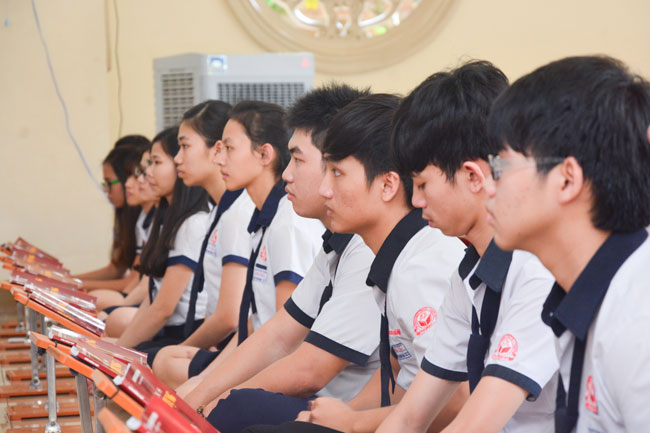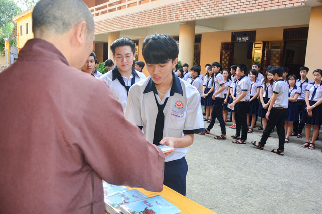 Before taking place the ceremony, they listened to the talk from Ven. Thich Tam Dao – Vice Abbot Hoang Phap pagoda. He hoped that pupils would focus on their study before the examination came. He advised they should study hard and think of their family, teachers and for themselves. The future is present. If they make effort at present, they would attain the good result in the future.