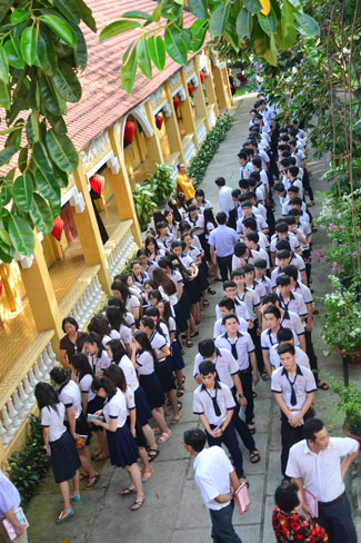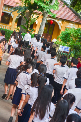 Pupils from Nhan Van high school visited Hoang Phap pagoda to do the praying ceremony before the high-school final examination and college or University entrance in 2015 on June 27th 2015 (May 12th Goat year).
