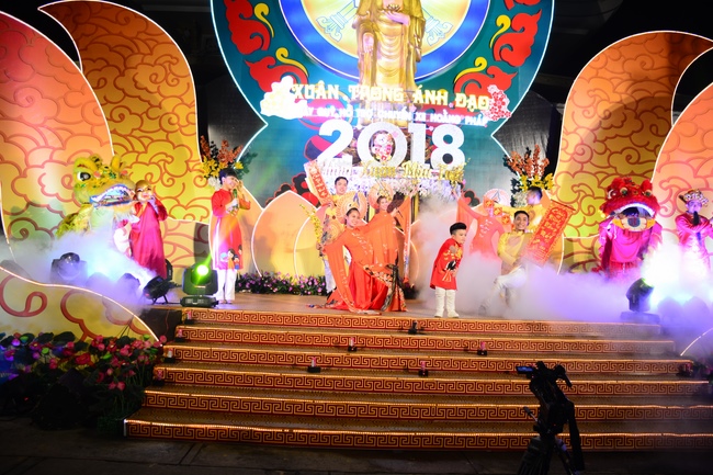 Tối ngày 31/01/2018 (nhằm ngày 15/12 Đinh Dậu) chùa Hoằng Pháp tổ chức chương trình ca nhạc mừng xuân với chủ đề “Xuân Trong Ánh Đạo”.