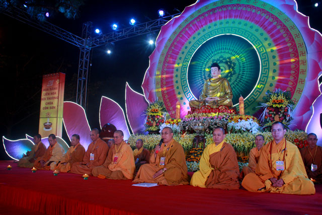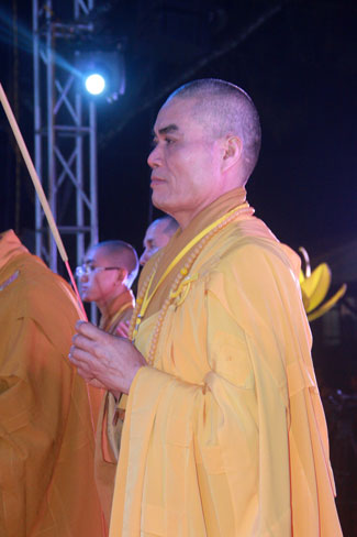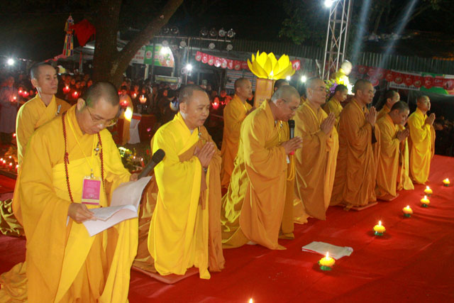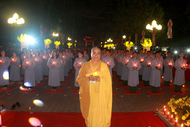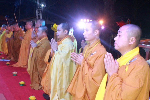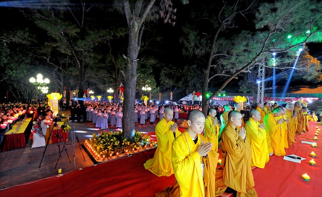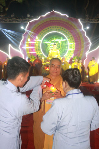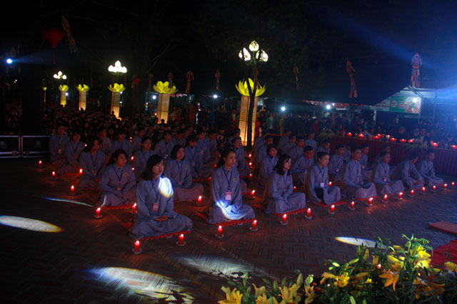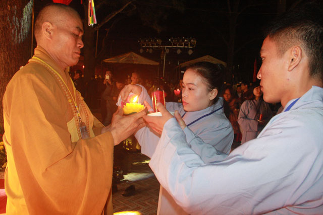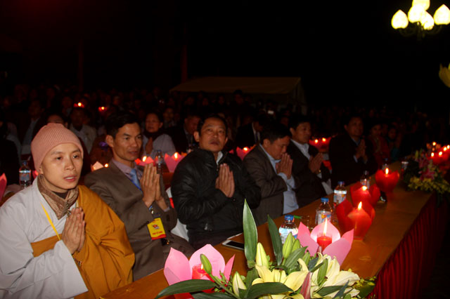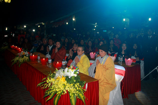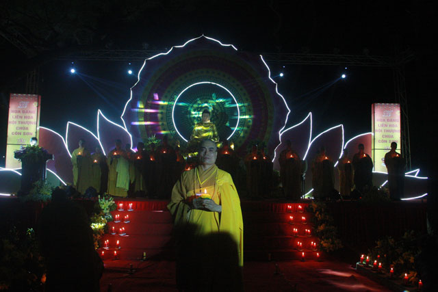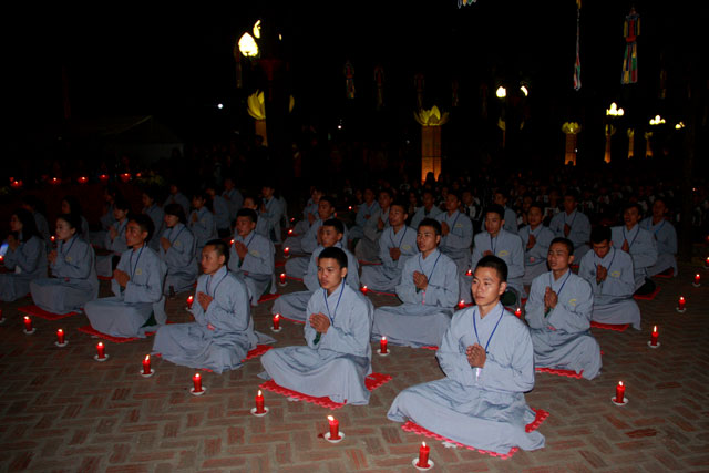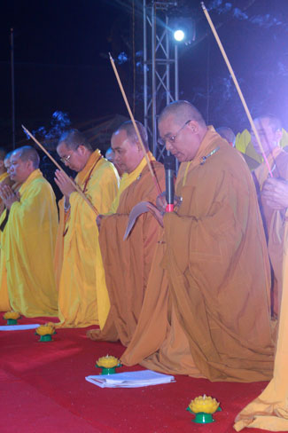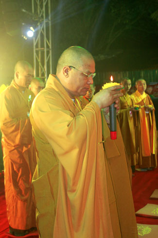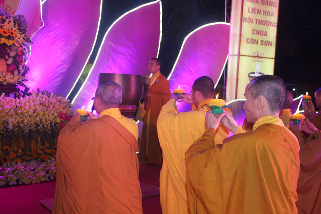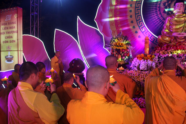 After that, the mass sincerely offered incense to Triratna and Bodhisattvas in ten directions; then came the most important part of the event, light sharing ritual. In the melodious music and pure environment, with the witness of Buddha, candle light, symbol of compassion, wisdom, knowledge and loving kindness, preached from predecessors to successors. All settled in Buddha’s glory name with calm and pure mind. "light shares from candle to candle, from heart to heart". Candle light, the symbol of wisdom and truth, understanding and loving kindness shone into this life to dispel the ignorance and delusion, to illuminate the faith and hope. From the first candle, the flame kept on preaching. The light illuminated the sky of Con Son head pagoda. The brightness together with the incense smokes made it the environment of peace, purityand ease in this secular world. The whole ashram sincerely recited Buddha name with the guidance from the monks, making this saha world the Pure land right here, at Con Son head pagoda.