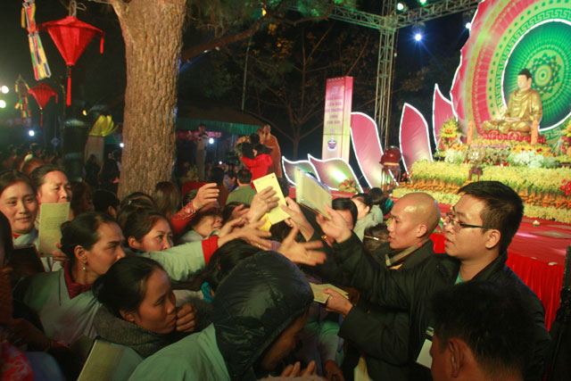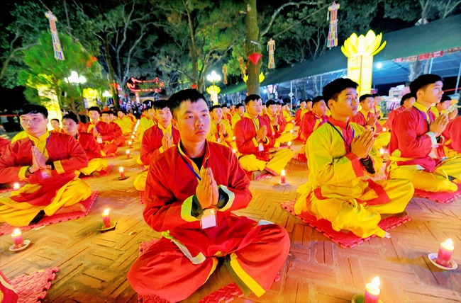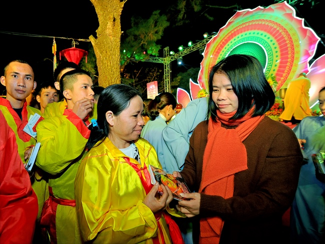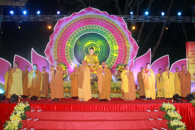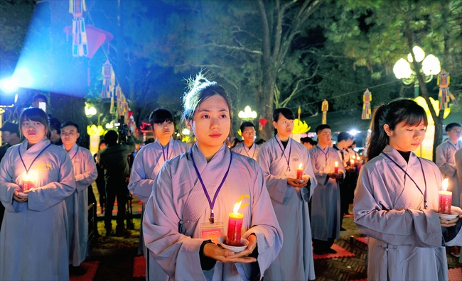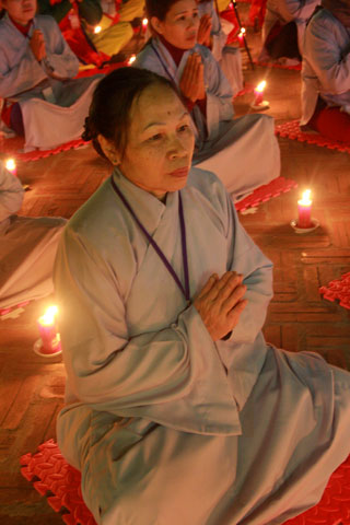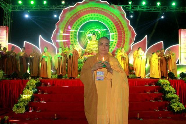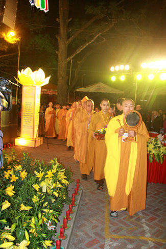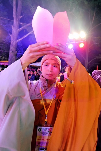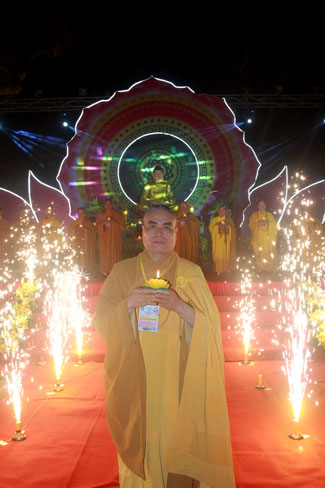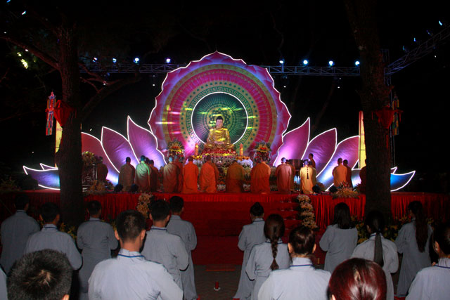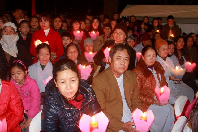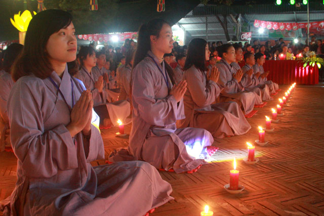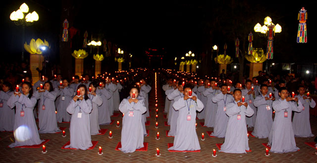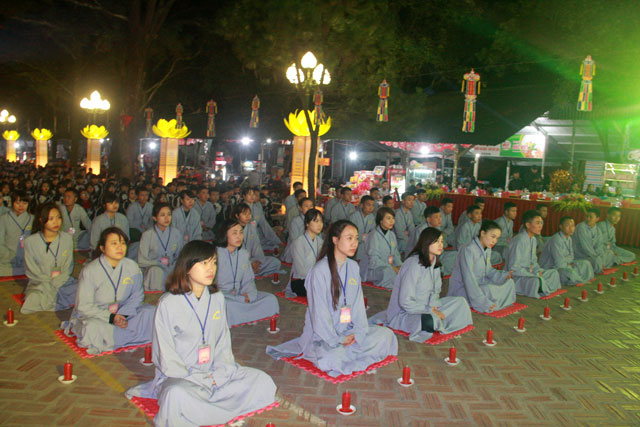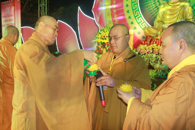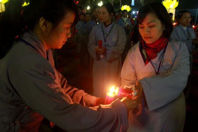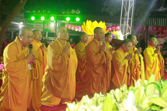 After that, the mass sincerely offered incense to Triratna and Bodhisattvas in ten directions; then came the most important part of the event, light sharing ritual. In the melodious music and pure environment, with the witness of Buddha, candle light, symbol of compassion, wisdom, knowledge and loving kindness, preached from predecessors to successors. All settled in Buddha’s glory name with calm and pure mind. "light shares from candle to candle, from heart to heart". Candle light, the symbol of wisdom and truth, understanding and loving kindness shone into this life to dispel the ignorance and delusion, to illuminate the faith and hope. From the first candle, the flame kept on preaching. The light illuminated the sky of Con Son head pagoda. The brightness together with the incense smokes made it the environment of peace, purityand ease in this secular world. The whole ashram sincerely recited Buddha name with the guidance from the monks, making this saha world the Pure land right here, at Con Son head pagoda.