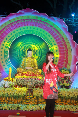 In the program, singers Pham Hai, Quynh Hoa, Anh Linh, Hau Hien and Mc Ha Trang offered their performance to Buddha.