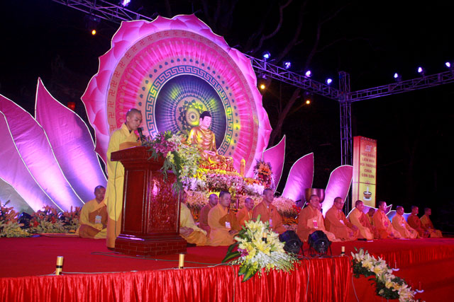 After the statement of reason and introduction of audience, Reverend Thich Thanh Vien, Abbot of Con Son head pagoda declared the opening speech, highlighting the importance and value of Con Son in Vietnam traditional culture and Vietnamese spiritual life. The candle light sharing meant the continuing and developing the light of wisdom and compassion of Buddhism Dharma from predecessors down to generations.