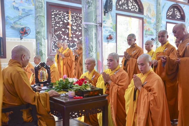 Today Sep 02, 2017 (Jul 12, lunar calendar), monks from Hoang Phap Pagoda and others gather at Phap Buu Pagoda, the summer retreat of MBVBP in Hoc Mon Dist, on the occasion of Pravaranà ceremony.