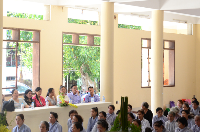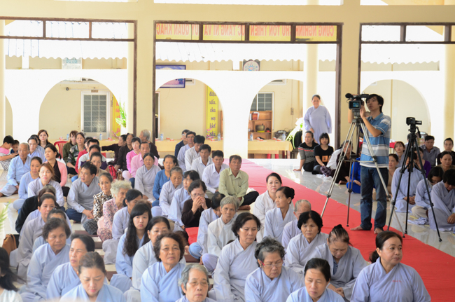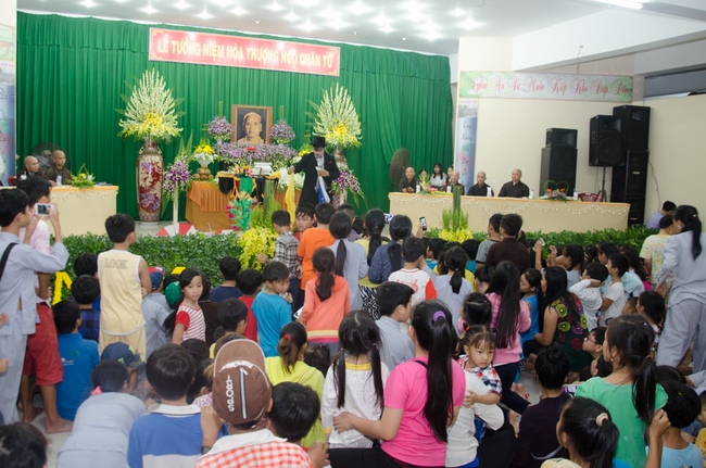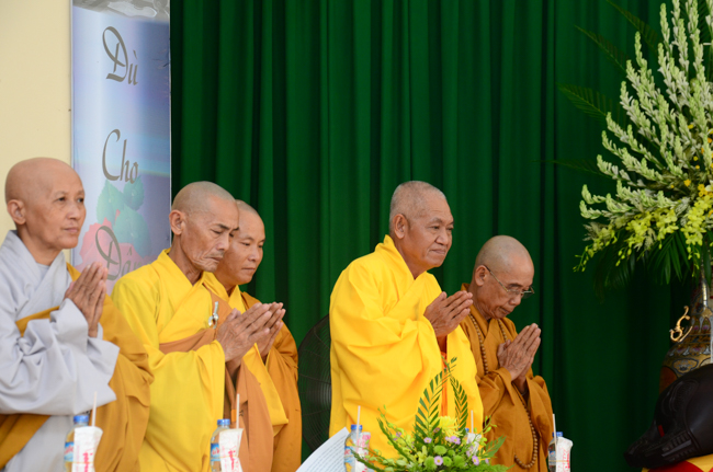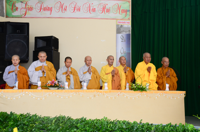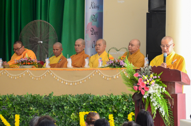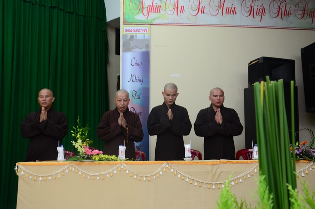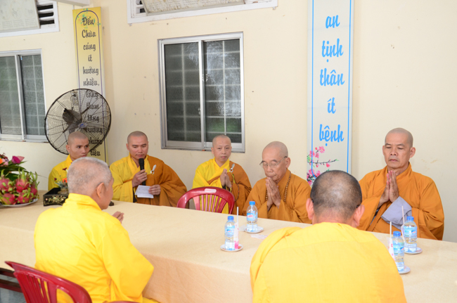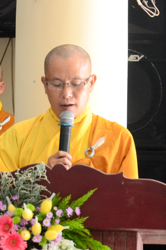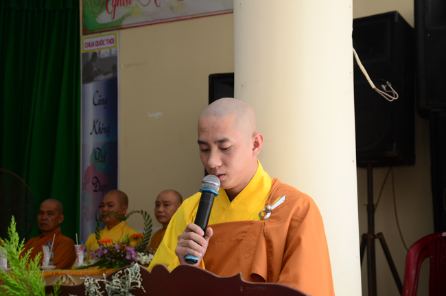 On behalf of the monks present, Thich Giac Huong gave words religion to all ashrams. Venerable praised the spirit of gratitude and returning the favor of kindness disciplines for Patriarch, and the Venerable also wish them as well as Buddhists everywhere should practice and follow Venerable Master, to cultivate the practice for themselves and contribute to "The eternal Saddharma, benefits for sentient beings."