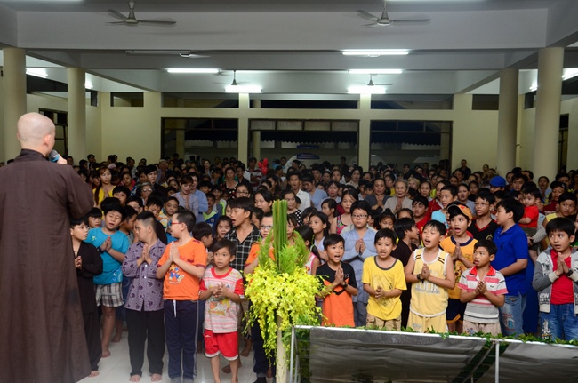 After religious words was the ceremony. The Monks and Buddhist devotees all were in chanting. The ceremony ended in the joy.Before that, the night November 13th 2015, Quoc Thoi pagoda held the cultural night with the participation of singers from Ho Chi Minh City.