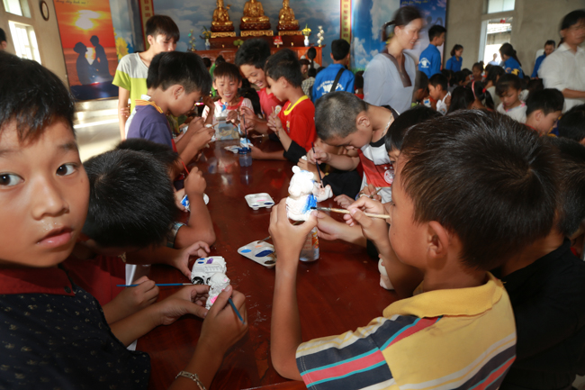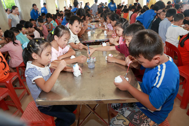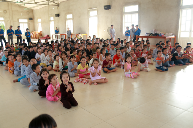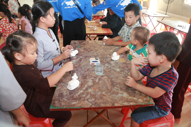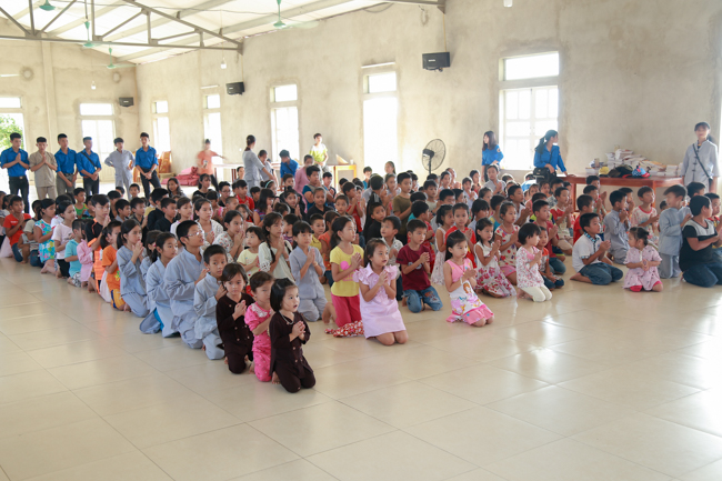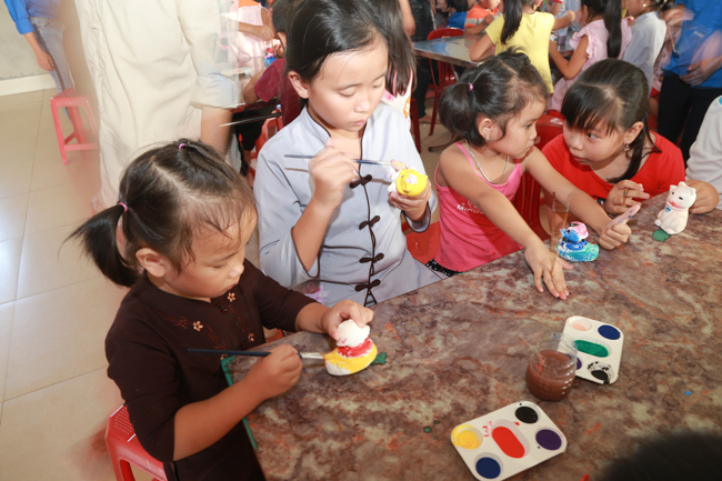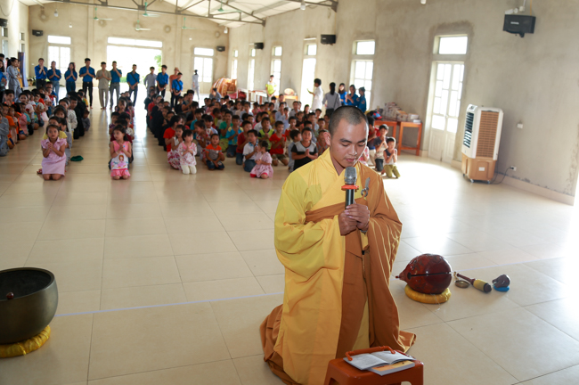 In the opening of the show, on behalf of the organizer, children were instructed to read “Nho On- Gratitude†which was composed by senior abbot Thich Chan Tinh. Later on, children enjoyed the statue filling/colouring. After that, senior venerable Thich Tam Hung showed children how to chant Buddha’s name and then, all moved to have dinner.