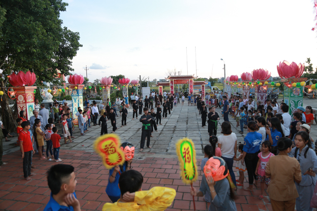 Children are considered the future of our society and Buddhism, and hoped to have the living life of a new world. In order to make that hope eternally bright, everyone has a responsibility to seed and take care of children. With that meaningful idea, on 01st/Oct/2017 (08th/Dec in Lunar Calendar), at Dong Cao Pagoda in Nga Yen town, Nga Son District, Thanh Hoa City, a show named “Happy Mid-Autumn Festival†was held by the supported believers and Buddhists. Thousands of kid-participants enjoyed that meaningful show including many performances referring to Vietnamese and Buddhist tradition.