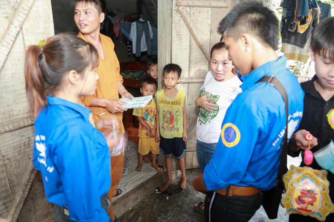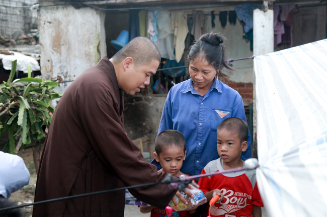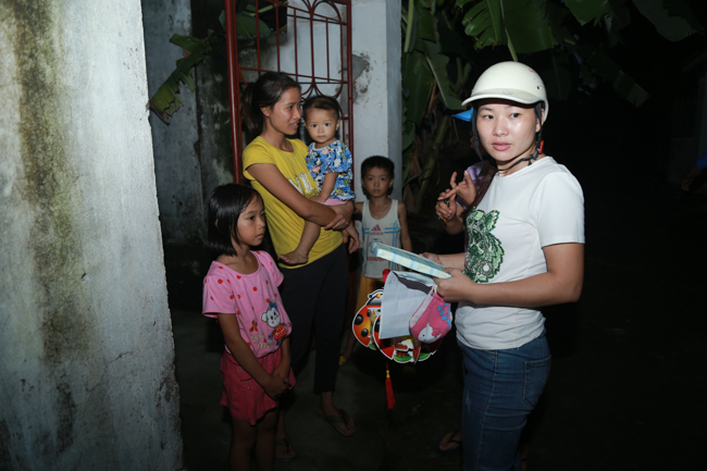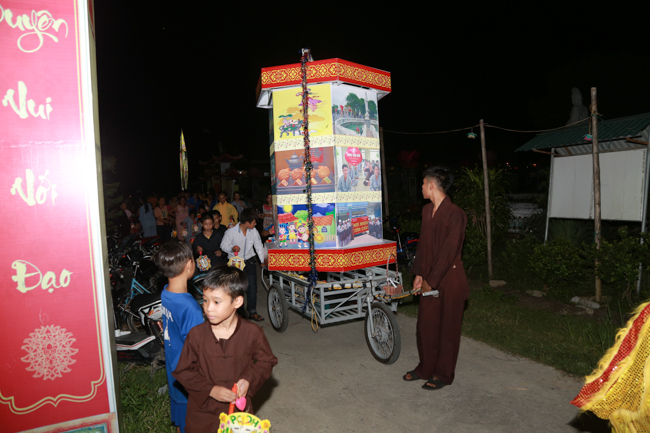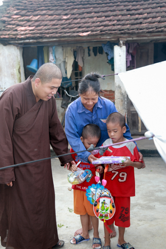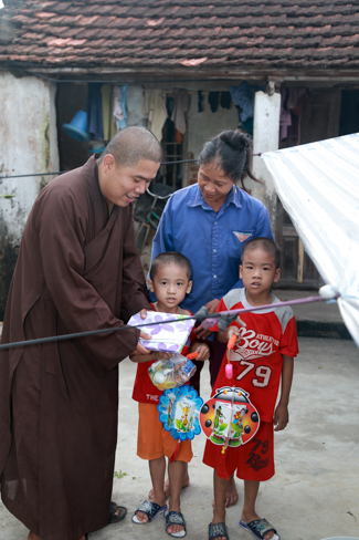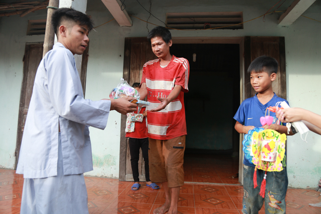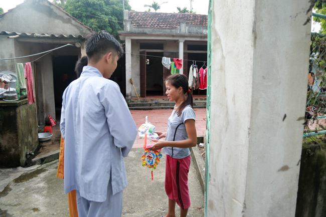 On 30th/Sept/2017 (11th/Aug in Lunar Calendar), it was one day before the “Happy Mid-Autumn Festivalâ€, Junior Venerable Thich Tam Hung had led children from Teenager Buddhist Club of Dong Cao Pagoda to visit and give festival gifts to the orphans, who are in poor condition in vicinity. About 40 gifts, valued 100.000VND/ each (including: sweets, cookies, 5 notebooks and one lantern) were given away, wishing them a warm Mid-Autumn Festival with their beloved.