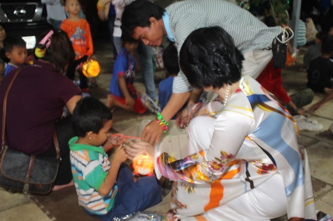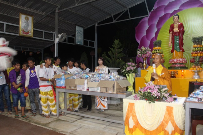 Before the ceremony, Junior Venerable Thich Tam Truc talked about the meaning ofMid-autumn Festival. It is the ceremony that had originated long time ago in Vietnam, which is an opportunity for children with fun, singing and looking back to the traditional folk games. Because of that, Hoang Phap Temple in Cambodia organized the music program on occasion of Mid-Autumn Festival to create a good playing field and useful for the children. After the Mid-Autumn lantern parade, they were awarded more than 300 gifts include: moon cake, candy, milk boxes, lanterns, copy books, pens and bead-bracelets.